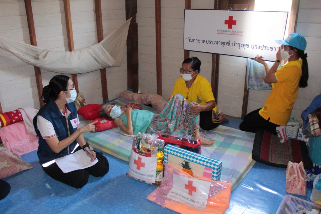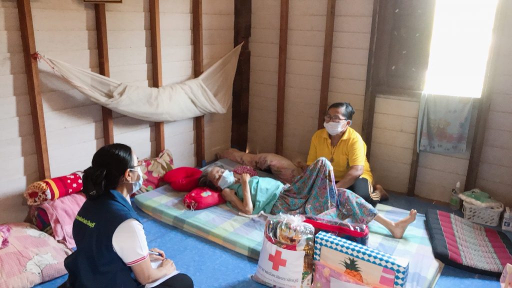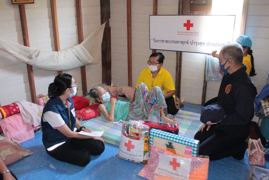วันที่ 11 กุมภาพันธ์ 2564 นางมัทนา สุวัณณุสส์ นายกเหล่ากาชาดจังหวัดปราจีนบุรี พร้อมด้วย คณะกรรมการและสมาชิกเหล่ากาชาดจังหวัดปราจีนบุรี นายชัยวรรณ นิยม นายอำเภอศรีมหาโพธิ พัฒนาสังคมและความมั่นคงของมนุษย์จังหวัดปราจีนบุรี จิตอาสาพระราชทาน ปลัดอำเภอศรีมหาโพธิ สาธารณสุขอำเภอ ผู้นำท้องที่ท้องถิ่น และ อสม. ร่วมลงพื้นที่เยี่ยมผู้ป่วยติดเตียง ที่ยากไร้ ขาดแคลน และด้อยโอกาส ราย นางผ่อน สืบจันทร์ อายุ 86 ปี บ้านเลขที่ 43 หมู่ 4 ต.หัวหว้า อ.ศรีมหาโพธิ จ.ปราจีนบุรี ตามโครงการ “วันกาชาด บรรเทาทุกข์ บำรุงสุข ปวงประชา”โดยเหล่ากาชาดจังหวัดปราจีนบุรี ได้มอบเงินช่วยเหลือ จำนวน 1,000 บาท ชุดอุปโภค – บริโภค จำนวน 1 ชุด มุ้ง จำนวน 1 หลัง ผ้าขนหนู จำนวน 1 ผืน สเปรย์แอลกอฮอล์ จำนวน 1 ขวด หน้ากากอนามัย จำนวน 2 ชิ้น ให้กับผู้ป่วยติดเตียงที่ยากไร้ ขาดแคลน และด้อยโอกาส เพื่อบรรเทาความเดือดร้อนเบื้องต้น พร้อมทั้งกล่าวให้กำลังใจ