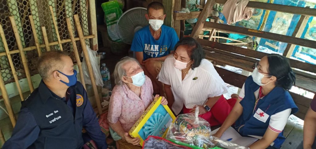 วันที่ 11 กุมภาพันธ์ 2564 นางมัทนา สุวัณณุสส์ นายกเหล่ากาชาดจังหวัดปราจีนบุรี พร้อมด้วยคณะกรรมการและสมาชิกเหล่ากาชาดจังหวัดปราจีนบุรี นายชัยวรรณ นิยม นายอำเภอศรีมหาโพธิ พัฒนาสังคมและความมั่นคงของมนุษย์จังหวัดปราจีนบุรี จิตอาสาพระราชทาน ปลัดอำเภอศรีมหาโพธิ สาธารณสุขอำเภอ ผู้นำท้องที่ท้องถิ่น และ อสม. ร่วมลงพื้นที่เยี่ยมผู้สูงอายุ ที่ยากไร้ ขาดแคลน และด้อยโอกาส ราย นางทองปลิว พารา อายุ 93 ปี บ้านเลขที่ 13 หมู่ 4 ต.หาดยาง อ.ศรีมหาโพธิ จ.ปราจีนบุรี ตามโครงการ “วันกาชาดบรรเทาทุกข์ บำรุงสุข ปวงประชา”โดยเหล่ากาชาดจังหวัดปราจีนบุรี ได้มอบเงินช่วยเหลือ จำนวน 1,000 บาท ชุดอุปโภค – บริโภค จำนวน 1 ชุด มุ้ง จำนวน 1 หลัง ผ้าขนหนู จำนวน 1 ผืน สเปรย์แอลกอฮอล์ จำนวน 1 ขวด หน้ากากอนามัย จำนวน 2 ชิ้น ให้กับผู้สูงอายุที่ยากไร้ ขาดแคลน และด้อยโอกาส เพื่อบรรเทาความเดือดร้อนเบื้องต้น พร้อมทั้งกล่าวให้กำลังใจ