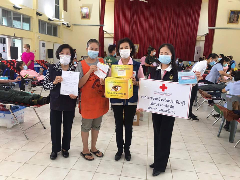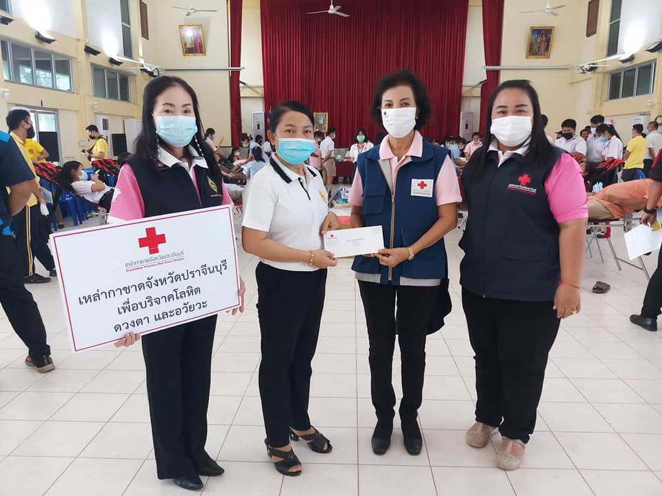 วันที่ 23 กุมภาพันธ์ 2564 นางมัทนา สุวัณณุสส์ นายกเหล่ากาชาดจังหวัดปราจีนบุรี มอบหมายให้ กรรมการและสมาชิกเหล่ากาชาดจังหวัดปราจีนบุรี ร่วมกับ โรงพยาบาลเจ้าพระยาอภัยภูเบศร ออกรับบริจาคโลหิต ดวงตา และอวัยวะ ณ หอประชุมอำเภอศรีมหาโพธิ ต.ศรีมหาโพธิ อ.ศรีมหาโพธิ จ.ปราจีนบุรีการออกหน่วยในวันนี้มีผู้มีจิตศรัทธาอันเป็นกุศลร่วมบริจาคโลหิต จำนวนทั้งสิ้น 237 ราย ได้โลหิตจำนวน 180 ราย/ยูนิต คิดเป็น 81,000 ซีซี แสดงความจำนงบริจาคดวงตา 7 ราย อวัยวะ 7 ราย ร่างกาย 3 ราย โดยได้รับความร่วมมือจาก ข้าราชการ เจ้าหน้าที่ ของอำเภอศรีมหาโพธิ เป็นอย่างดียิ่ง วันนี้เหล่ากาชาดจังหวัดปราจีนบุรีได้มอบ สเปรย์แอลกอฮอล์ จำนวน 200 ขวด เพื่อเป็นการขอบคุณสำหรับผู้บริจาคโลหิตด้วย เหล่ากาชาดจังหวัดปราจีนบุรี ขอขอบพระคุณมา ณ โอกาสนี้