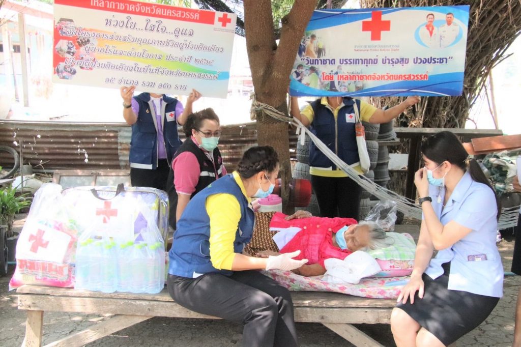 วันที่ 1 มีนาคม 2564 นางสุกัญญา ชุมอุปการ นายกเหล่ากาชาดจังหวัดนครสวรรค์ พร้อมคณะ ร่วมกับอำเภอตากฟ้า พัฒนาสังคมและความมั่นคงของมนุษย์ จังหวัดนครสวรรค์ แม่บ้านมหาดไทยจังหวัดนครสวรรค์ และสาธารณสุขอำเภอตากฟ้า ลงพื้นที่เยี่ยมผู้ป่วยติดเตียงในโครงการ “ส่งเสริมสุขภาพชีวิตผู้ป่วยติดเตียง ผู้ยากไร้และด้อยโอกาส ประจำปี 2564” ราย นางอุบล บุญผาสุข อายุ 88 ปี บ้านเลขที่ 25 หมู่ที่ 11 ตำบลอุดมธัญญา อำเภอตากฟ้า จังหวัดนครสวรรค์ โดยเหล่ากาชาดฯ มอบเงินสงเคราะห์ จำนวน 1,000 บาท พร้อมเครื่องอุปโภค บริโภค ผ้าห่มกันหนาว และน้ำดื่ม เพื่อเป็นการบรรเทาความเดือดร้อนในเบื้องต้น และให้กำลังใจในการเนินชีวิตต่อไป