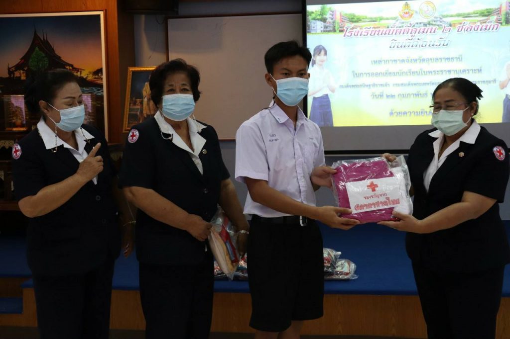 วันที่ 22 กุมภาพันธ์ 2564 นางยุพาภร วิฑูรย์ นายกเหล่ากาชาดจังหวัดอุบลราชธานี พร้อมด้วย กรรมการเหล่ากาชาดจังหวัดอุบลราชธานี ที่ปรึกษาเหล่ากาชาดจังหวัดอุบลราชธานี และสมาชิกเหล่ากาชาดจังหวัดอุบลราชธานี ร่วมออกเยี่ยมนักเรียนทุนในพระราชานุเคราะห์ สมเด็จพระกนิษฐาธิราชเจ้า กรมสมเด็จพระเทพรัตนราชสุดาฯ สยามบรมราชกุมารี ในพื้นที่อำเภอวารินชำราบ ณ มหาวิทยาลัยอุบลราชธานี อำเภอวารินชำราบ จังหวัดอุบลราชธานี จำนวน 4 ราย โดยมีการมอบชุดของขวัญเเละให้กำลังใจ พร้อมให้คำเเนะนำในการใชชีวิตเเละใชเงินทุนรวมถึงเรื่องการเรียน