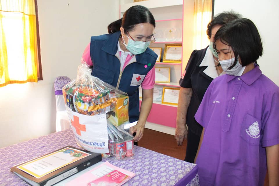 วันอังคารที่ 9 มีนาคม 2564 นางมัทนา สุวัณณุสส์ นายกเหล่ากาชาดจังหวัดปราจีนบุรี พร้อมด้วย พ.ต.ท.หญิง สุมน เนื่องจำนงค์ รองนายกเหล่ากาชาดจังหวัดปราจีนบุรี คณะกรรมการและสมาชิกเหล่ากาชาดจังหวัดปราจีนบุรี ผู้แทนนายอำเภอประจันตคามออกตรวจเยี่ยมและให้กำลังใจ นักเรียนยากไร้และด้อยโอกาส ราย เด็กหญิงวณิชญา ปรืองาม นักเรียนชั้นประถมศึกษาปีที่ 4 โรงเรียนบ้านว่านบ้านด่าน ต.บุฝ้าย อ.ประจันตคาม จ.ปราจีนบุรี ตามโครงการ “วันกาชาด บรรเทาทุกข์ บำรุงสุขปวงประชา” ให้การสังคมสงเคราะห์นักเรียนยากไร้และด้อยโอกาส ประจำปี 2564โดยเหล่ากาชาดจังหวัดปราจีนบุรี มอบชุดอุปโภค-บริโภค จำนวน 1 ชุด เพื่อเป็นขวัญและกำลังใจในการศึกษาเล่าเรียนต่อไป