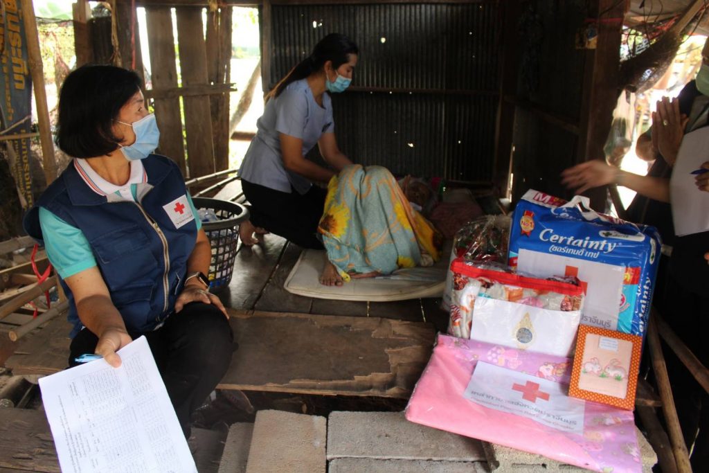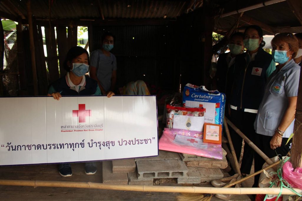 วันที่ 10 มีนาคม 2564 นางมัทนา สุวัณณุสส์ นายกเหล่ากาชาดจังหวัดปราจีนบุรี พร้อมด้วย พ.ต.ท.หญิง สุมน เนื่องจำนงค์ รองนายกเหล่ากาชาดจังหวัดปราจีนบุรี คณะกรรมการและสมาชิกเหล่ากาชาดจังหวัดปราจีนบุรี ปลัดอำเภอเมืองปราจีนบุรี พัฒนาสังคมและความมั่นคงของมนุษย์จังหวัดปราจีนบุรี จิตอาสาพระราชทาน สาธารณสุขอำเภอ ผู้นำท้องที่ท้องถิ่น และ อสม. ร่วมลงพื้นที่เยี่ยมผู้สูงอายุ ผู้ป่วยติดเตียงที่ยากไร้ ขาดแคลน และด้อยโอกาส ตามโครงการ “วันกาชาด บรรเทาทุกข์ บำรุงสุข ปวงประชา” ราย นางสายัณ อ่วมเชิด อายุ 90 ปี บ้านเลขที่ 125 ม.9 ต.ดงขี้เหล็ก อ.เมืองปราจีนบุรี จ.ปราจีนบุรีโดยเหล่ากาชาดจังหวัดปราจีนบุรี ได้มอบชุดอุปโภค – บริโภค จำนวน 1 ชุด มุ้ง จำนวน 1 หลัง ผ้าขนหนู จำนวน 1 ผืน แพมเพิส จำนวน 1 แพค สเปรย์แอลกอฮอล์ จำนวน 1 ขวด หน้ากากอนามัย จำนวน 2 ชิ้น ให้กับผู้สูงอายุ ผู้ป่วยติดเตียง ที่ยากไร้ ขาดแคลน และด้อยโอกาส เพื่อบรรเทาความเดือดร้อนเบื้องต้น พร้อมทั้งกล่าวให้กำลังใจ