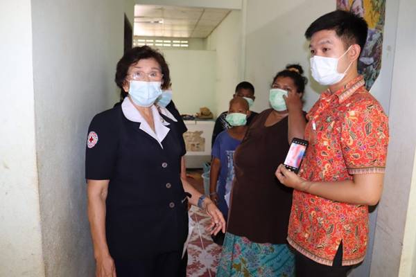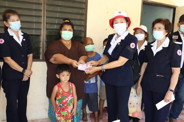 โดยเหล่ากาชาดจังหวัดตรังมอบชุดธารน้ำใจ และผ้าอ้อมสำเร็จรูป คนละ 1 ชุด และมอบเงินช่วยเหลือเพื่อเป็นการช่วยเหลือเบื้องต้น