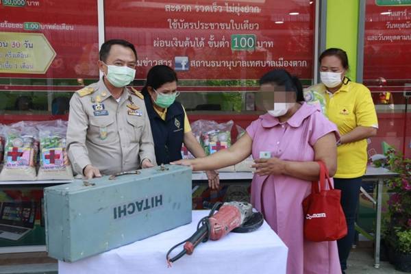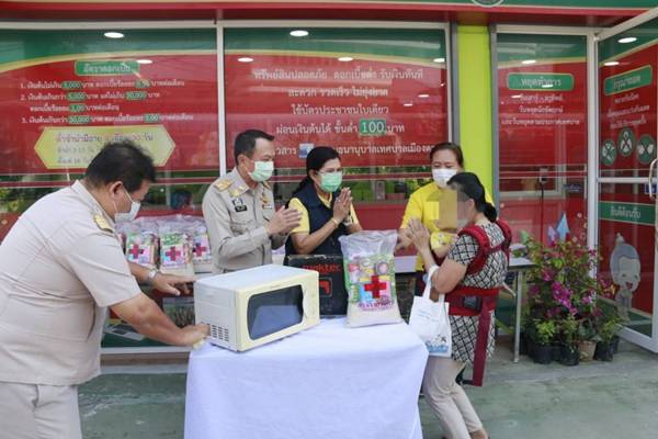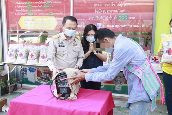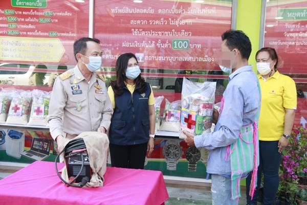 วันที่ 15 กุมภาพันธ์ 2564 ที่ สถานธนานุบาล เทศบาลเมืองตาก นายพงศ์รัตน์ ภิรมย์รัตน์ ผู้ว่าราชการจังหวัดตาก พร้อมด้วยนางศลิษา ภิรมย์รัตน์ นายกเหล่ากาชาดจังหวัดตาก ให้การสนับสนุนเงินเพื่อไถ่ถอนสิ่งของเพื่อการประกอบ อาชีพให้แก่ประชาชนที่เดือดร้อน จำนวน 27 ราย เป็นเงิน 20,700 บาท พร้อมมอบถุงยังชีพ น้ำดื่ม เพื่อเป็นขวัญและกำลังใจในการดำรงชีพ โดยสิ่งของที่ไถ่ถอน ได้แก่ สว่านไฟฟ้า ไมโคเวฟ หม้ออบลมร้อน แว่นตา หินเจียไฟฟ้า สว่านไฟฟ้า กบไฟฟ้า เลื่อยไฟฟ้า ขันเงิน นาฬิกาข้อมือ เครื่องดูดฝุ่น เครื่องสูบน้ำไดโว้ และตู้เชื่อมไฟฟ้า ให้ประชาชนที่ได้รับความเดือนร้อน นำไปใช้ประกอบอาชีพ เพื่อให้ผ่านพ้นวิกฤตการแพร่ระบาดของเชื้อไวรัสโควิด-19 และเป็นกำลังใจในการดำรงชีพต่อไป