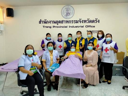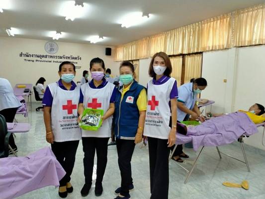 วันที่ 15 กุมภาพันธ์ 2564 นางละมัย เจริญโสภา นายกเหล่ากาชาดจังหวัดตรัง มอบหมายคณะกรรมการเหล่ากาชาด สมาชิก เจ้าหน้าที่ และจิตอาสาวภากาชาดไทย ร่วมกับธนาคารเลือดโรงพยาบาลตรัง ออกหน่วยรับบริจาคโลหิต ณ สภาอุตสาหกรรมจังหวัดตรัง มีผู้บริจาคทั้งหมด 114 ราย ได้โลหิต 94 ยูนิต คิดเป็นปริมาณ 37,600 ซีซี. พร้อมมอบผ้าขนหนู 95 ชิ้น โดยขอบคุณคุณสายใจ รักราวี บริจาคขนม10 กล่อ งสำหรับผู้บริจาคโลหิตด้วย