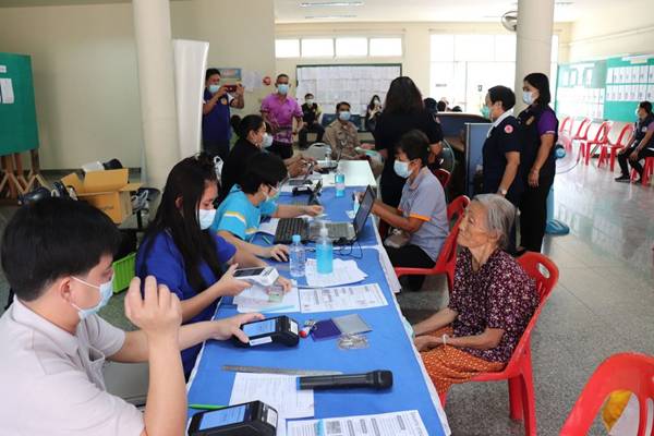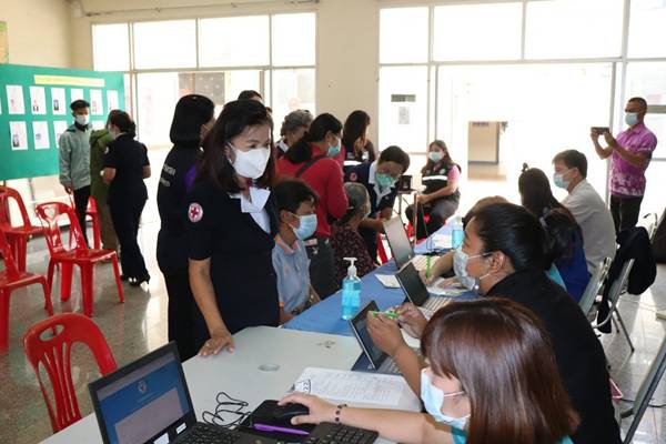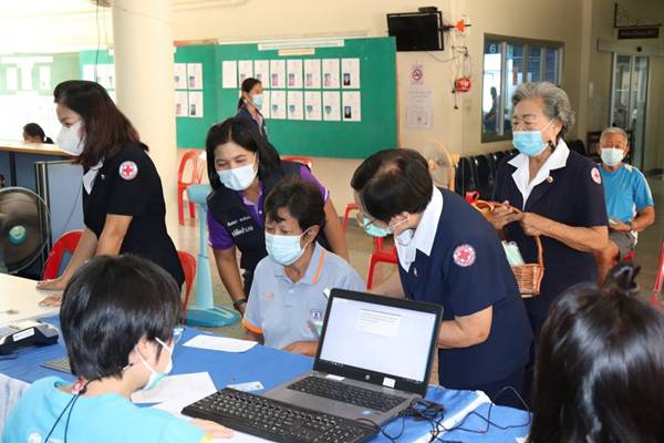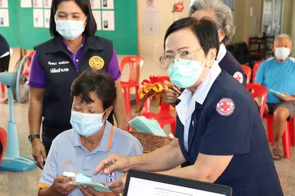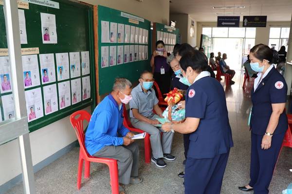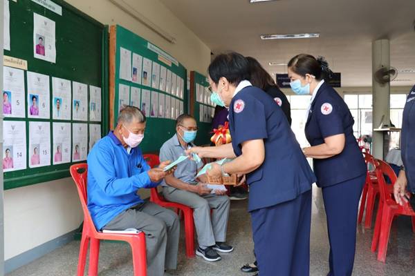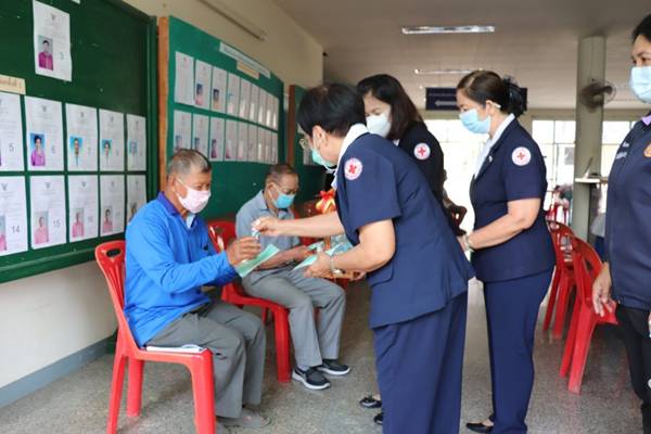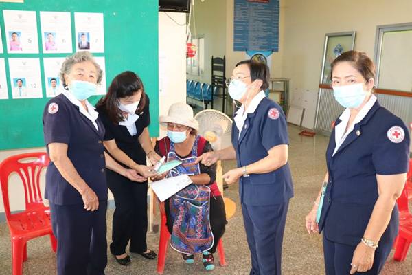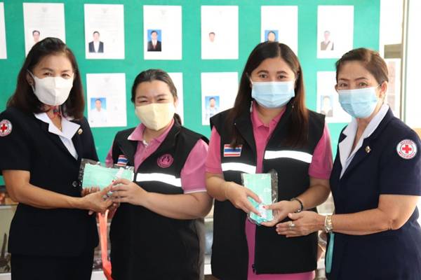 วันที่ 23 กุมภาพันธ์ 2564 นางศลิษา ภิรมย์รัตน์ นายกเหล่ากาชาดจังหวัดตาก มอบหมายให้ ที่ปรึกษา/กรรมการ/สมาชิกเหล่ากาชาดจังหวัดตาก ลงพื้นที่ แจกหน้ากากอนามัย Surgical Mask และ แอลกอฮอล์สเปรย์ 50 ml เพื่อใช้ป้องกันและควบคุมการแพร่ระบาดในสถานการณ์โควิด – 19 ให้แก่ประชาชน ผู้มาใช้บริการ One Stop Service สำหรับใช้ในการรับลงทะเบียนผู้ขอรับสิทธิ์โครงการ “เราชนะ” สำหรับกลุ่มประชาชนที่ไม่มีโทรศัพท์มือถือแบบสมาร์ทโฟน ณ ที่ว่าการอำเภอเมืองตาก จังหวัดตาก