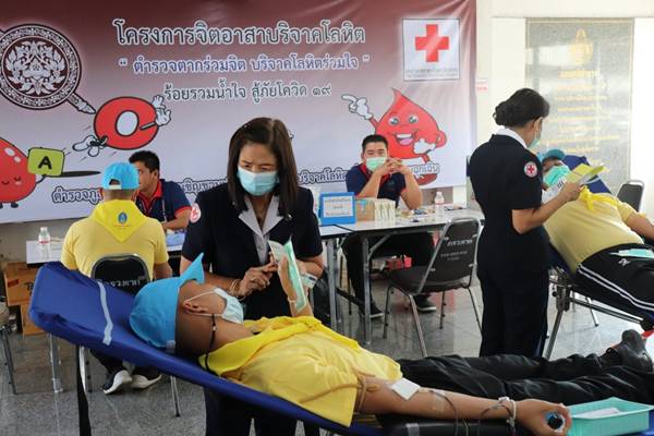วันที่ 25 กุมภาพันธ์ 2564 ที่สถานีตำรวจภูธรจังหวัดตาก นางศลิษา ภิรมย์รัตน์ นายกเหล่ากาชาดจังหวัดตาก พร้อมด้วยที่ปรึกษา/กรรมการ/สมาชิกเหล่ากาชาดจังหวัดตาก ร่วมกับ ศูนย์บริการโลหิตแห่งชาติ ภาค 8 นครสวรรค์ โรงพยาบาลสมเด็จพระเจ้าตากสินมหาราช และ สถานีกาชาดเทพรัตน์ (สถานีกาชาดที่ 13 จังหวัดตาก) ออกหน่วยรับบริจาคโลหิต ประจำปีงบประมาณ 2564 ร่วมเป็นส่วนหนึ่งของการให้ ในโครงการ “จิตอาสา บริจาคโลหิต Plus 1 เพิ่มจำนวนครั้ง เพิ่มโลหิต เพิ่มชีวิต” เพื่อสำรองไว้สำหรับยากฉุกเฉิน โดยมี พล.ต.ต.ปริญญา วิศิษฐฎากุล ผบก.ภ.จว.ตาก ร่วมให้กำลังใจแก่ผู้บริจาคโลหิตในครั้งนี้- ผู้ลงทะเบียน 70 ราย- ยอดผู้บริจาคโลหิต 42 ราย คิดเป็น ปริมาณโลหิต 14,700 ซี.ซี.- ผู้แสดงความจำนงบริจาคดวงตา 4 ราย- ผู้แสดงความจำนงบริจาคอวัยวะ 5 ราย ในการนี้ได้แจกหน้ากากอนามัย Surgical Mask และ แอลกอฮอล์สเปรย์ 50 ml ให้แก่ผู้บริจาคโลหิตและเจ้าหน้าที่ปฏิบัติงาน เพื่อใช้ป้องกันและควบคุมการแพร่ระบาดของโรคโควิด-19 ต่อไป