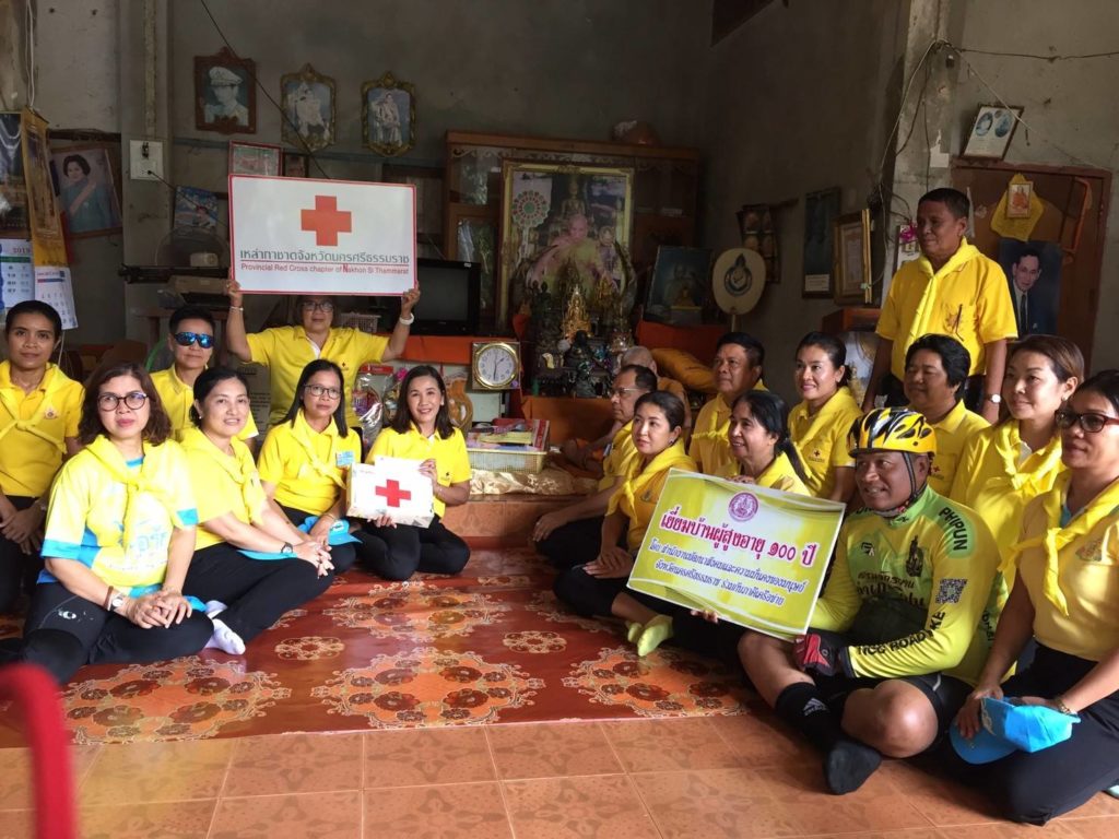 พร้อมด้วยคณะกรรมการเหล่ากาชาดจังหวัดนครศรีธรรมราชนำเครื่องอุปโภคบริโภคและเงินสด จำนวน 1,000 บาท มอบผู้สูงอายุ 100 ปีขึ้น ในพื้นที่อำเภอพิปูน
