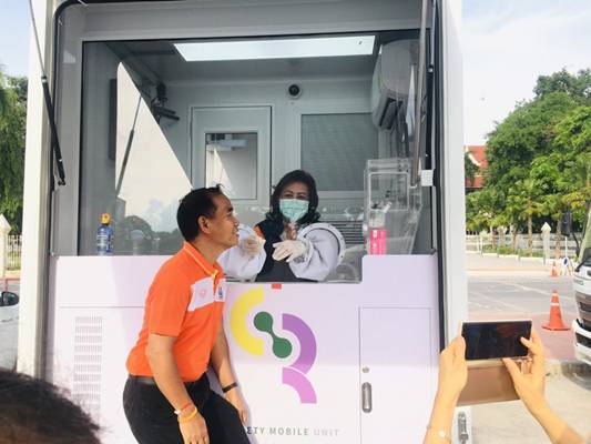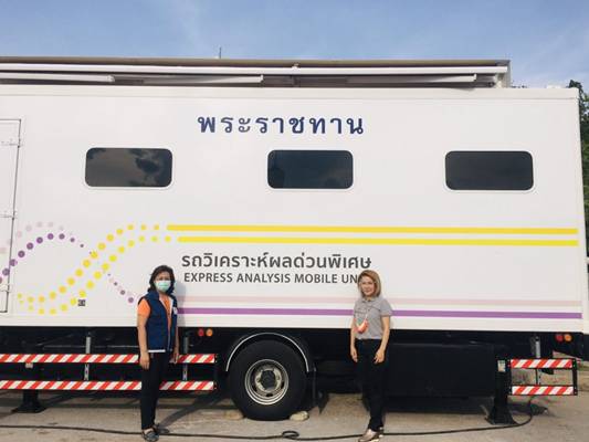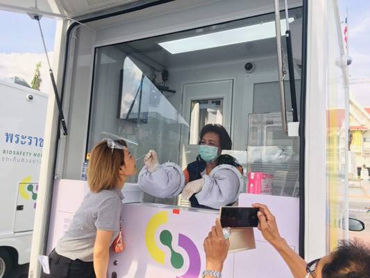 วันที่ 22 เมษายน 2564 พระบาทสมเด็จพระเจ้าอยู่หัวฯ ทรงมีพระมหากรุณาโปรดเกล้าฯ พระราชทานรถเก็บตัวอย่างชีวนิรภัยให้จังหวัดนครราชสีมา นำมาให้บริการตรวจคัดกรองเชิงรุกหาเชื้อโควิด-19 ให้กับประชาชนในพื้นที่เสี่ยงในเขตพื้นที่อำเภอเมืองนครราชสีมา ทั้งนี้ นางณัฏฐินีภรณ์ จันทรโณทัย นายกเหล่ากาชาดจังหวัดนครราชสีมา ได้ลงพื้นที่ให้กำลังใจทีมแพทย์และเจ้าหน้าที่ที่เกี่ยวข้อง ณ สนามหน้าศาลากลาง อ.เมืองนครราชสีมา จ.นครราชสีมา