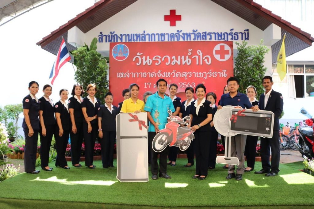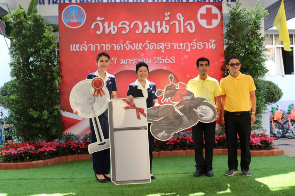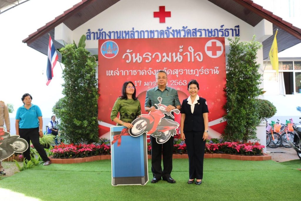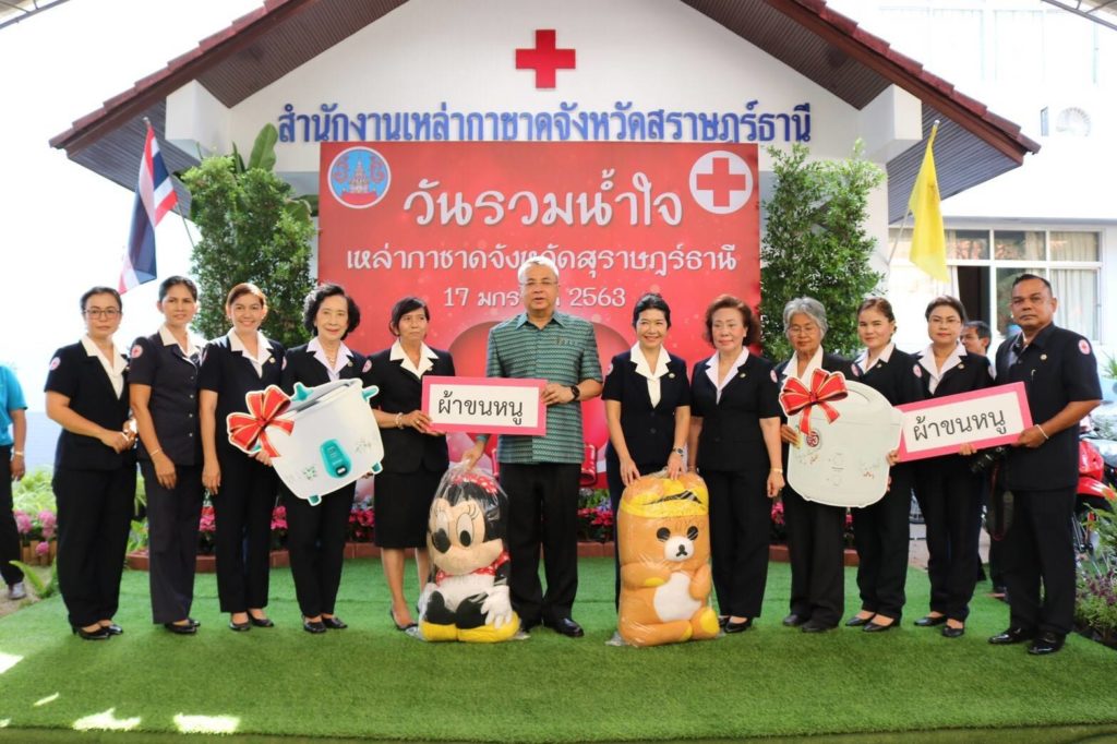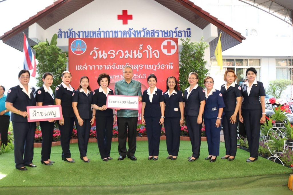 วันที่ 17 มกราคม 2563 นายวิชวุทย์ จินโต ผู้ว่าราชการจังหวัดสุราษฎร์ธานี เป็นประธานในงาน ” วันรวมน้ำใจ ประจำปี 2563 ” โดยมี นางอุรสา จินโต นายกเหล่ากาชาดจังหวัดสุราษฎร์ธานี เป็นผู้กล่าวถึงวัตถุประสงค์ของงาน ณ สำนักงานเหล่ากาชาดจังหวัดสุราษฎร์ธานี อำเภอเมือง จังหวัดสุราษฎร์ธานี โดยมี หน่วยงานต่างๆ ทั้งภาครัฐ ภาคเอกชน ที่ปรึกษา/กรรมการ/สมาชิกเหล่ากาชาดจังหวัดสุราษฎร์ธานี ตลอดจนผู้มีจิตกุศล ได้ทยอยนำปัจจัยและสิ่งของเครื่องใช้ต่างๆ ไปมอบให้เหล่ากาชาดจังหวัดสุราษฎร์ธานี เพื่อจะนำไปใช้เป็นของรางวัลในร้านนาวากาชาดในงาน ” ของดีเมืองสุราษฎร์และกาชาดจังหวัด ประจำปี 2563 ” ซึ่งกำหนดจะจัดขึ้นระหว่างวันที่ 3 – 12 กุมภาพันธ์ 2563 ณ บริเวณริมเขื่อนแม่น้ำตาปี อำเภอเมือง จังหวัดสุราษฎร์ธานี