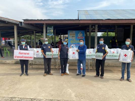 วันที่ 23 เมษายน 2564 นางณัฏฐินีภรณ์ จันทรโณทัย นายกเหล่ากาชาดจังหวัดนครราชสีมา มอบหมายให้นายเดชฤทธิ์ ถิตย์ฉาย นายอำเภอห้วยแถลง/นายกกิ่งกาชาดอำเภอห้วยแถลง เดินทางมอบถุงยังชีพ น้ำดื่ม ให้กับผู้มีความเสี่ยง ติดเชื้อไวรัสโรค covid-19