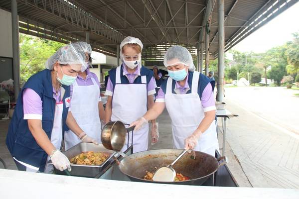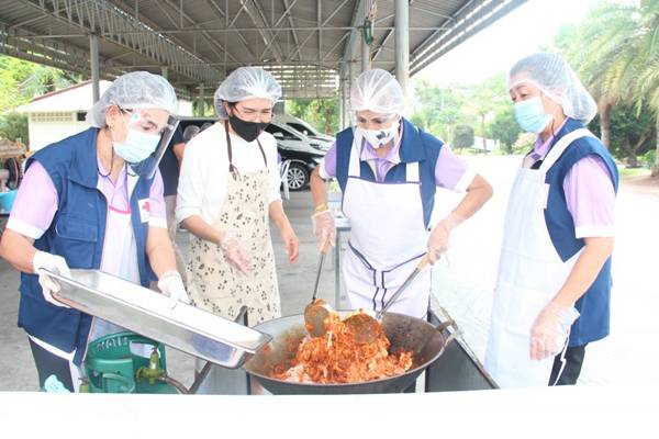 วันที่ 24 เมษายน 2564 นางณัฏฐินีภรณ์ จันทรโณทัย นายกเหล่ากาชาดจังหวัดนครราชสีมา ร่วมปรุงอาหาร ให้คณะแพทย์ที่มาให้บริการตรวจคัดกรองหาเชื้อโควิด-19 มื้อกลางวัน จำนวน 120 กล่อง และรับสนับสนุนวัตถุดิบทำข้าวกล่อง จำนวน 320 กล่อง จากคุณนิธินันท์ เมธีพงศ์สาธิตคุณศิราณี นิมมิตคุณนงนุช. สิงห์สุขสวัสดิ์มื้อกลางวัน ข้าวมันไก่ 160 กล่องมื้อเย็น ข้าวผัดกุนเชียง ไข่ดาว 160 กล่อง รวม 320 กล่องโดยได้ส่งมอบให้แก่บุคลากรทางการแพทย์ และเจ้าหน้าที่ที่เกี่ยวข้อง โรงพยาบาลสนามทั้ง 2 แห่ง ณ สนามกีฬาเฉลิมพระเกียรติ 80 พรรษา จังหวัดนครราชสีมา