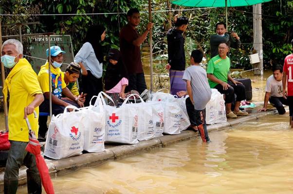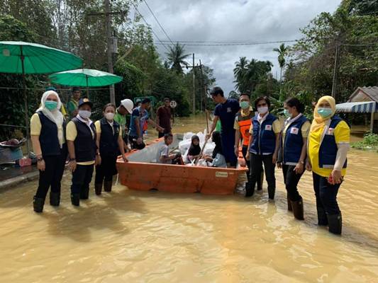 วันที่ 7 มกราคม 2564 นางโสรยา พานิชพงศ์ นายกเหล่ากาชาดจังหวัดยะลา มอบหมายให้ นายพลรัช รองเลื่อน ปลัดจังหวัดยะลา/เลขานุการเหล่ากาชาดจังหวัดยะลา พร้อมด้วย กรรมการเหล่ากาชาดและสมาชิกเหล่ากาชาดจังหวัดยะลา ร่วมกับ นายธราวุธ ช่วยเกิด นายอำเภอบันนังสตา ผู้แทนป้องกันและบรรเทาสาธารณภัยจังหวัดยะลา ผู้นำท้องที่ ผู้นำท้องถิ่นหน่วยกำลัง จิตอาสาลงพื้นที่เยี่ยมให้กำลังใจและมอบชุดธารน้ำใจให้ผู้ประสบอุทกภัยในพื้นที่ ตำบลบาเจาะ อำเภอบันนังสตา จังหวัดยะลาจำนวน 60 ชุด/ครัวเรือน