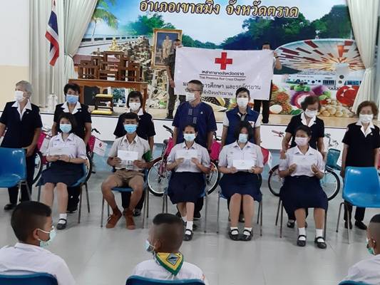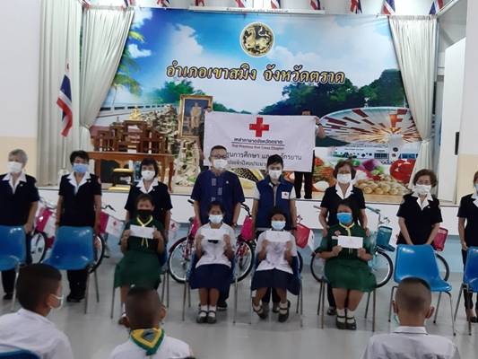 วันที่ 11 มีนาคม 2564 นางสรินยา ประกอบผล นายกเหล่ากาชาดจังหวัดตราด มอบหมายให้ นางวิสา วังรัตน์กุล กรรมการเหล่ากาชาดจังหวัดตราด พร้อมด้วยคณะกรรมการและสมาชิกเหล่ากาชาดจังหวัดตราด มอบทุนการศึกษาและรถจักรยาน ให้กับนักเรียนในพื้นที่อำเภอเขาสมิง ณ สโมสรเขาสมิง ที่ว่าการอำเภอเขาสมิง โดยมีนายพีระวัฒน์ วังรัตน์กุล นายอำเภอเขาสมิง ให้เกียรติเป็นประธานในการมอบทุนฯ ในครั้งนี้เหล่ากาชาดจังหวัดตราด ได้จัดทำโครงการมอบทุนการศึกษาและรถจักรยาน ประจำปีงบประมาณ พ.ศ. 2564 เพื่อมอบทุนฯ และรถจักรยานให้กับนักเรียนนักศึกษา ในพื้นที่จังหวัดตราด ทุนการศึกษา จำนวน 290 ทุน และรถจักรยาน จำนวน 50 คัน สำหรับอำเภอเขาสมิงนั้น เหล่ากาชาดจังหวัดตราดได้มอบทุนฯ และรถจักรยาน ดังนี้1. ทุนการศึกษาระดับประถมศึกษา จำนวน 14 ทุน2. ทุนการศึกษาระดับมัธยมศึกษาตอนต้น จำนวน 15 ทุน3. ทุนการศึกษาระดับมัธยมศึกษาตอนปลาย จำนวน 5 ทุน4. รถจักรยานระดับประถมศึกษา จำนวน 10 คัน