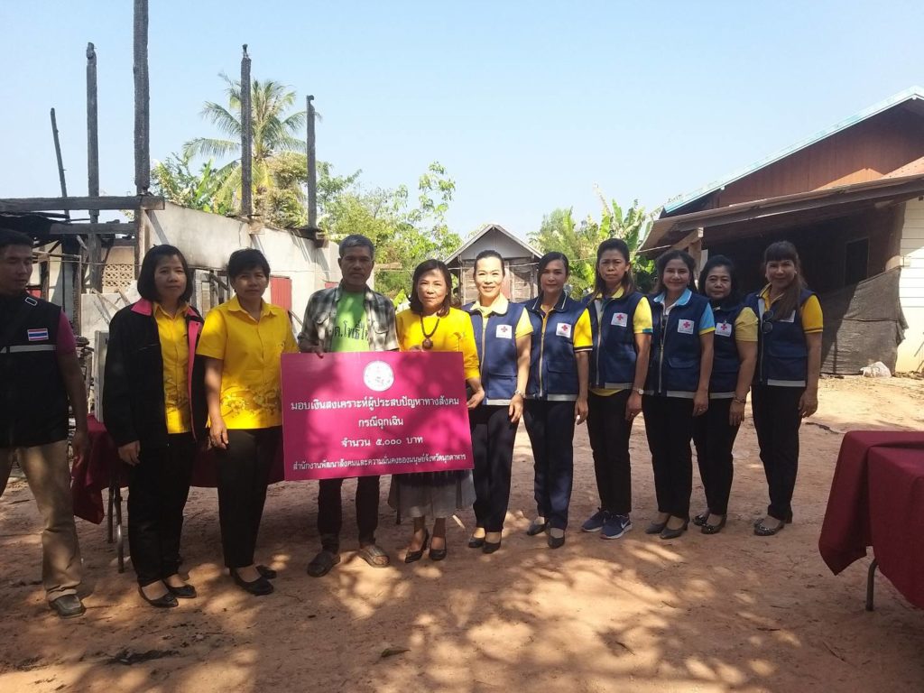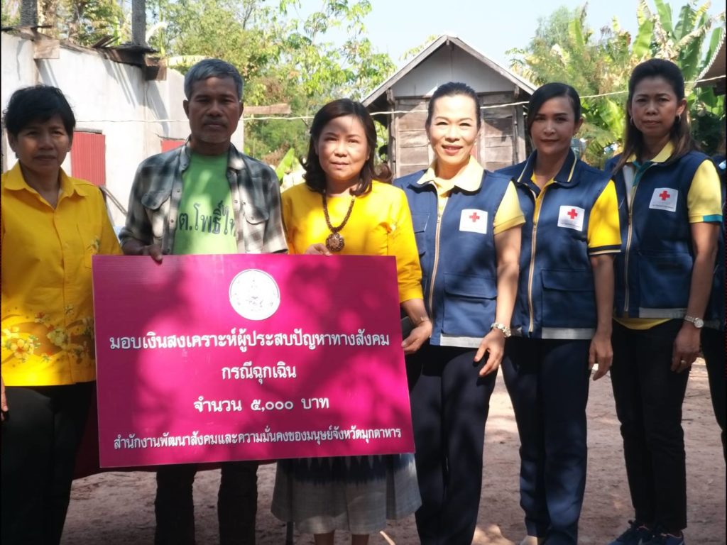 วันที่ 21 มกราคม 2563 ทันตแพทย์หญิง ศิริรัตน์ ศิริมาศ นายกเหล่ากาชาดจังหวัดมุกดาหาร พร้อมด้วยรองนายกเหล่ากาชาดจังหวัดมุกดาหารและที่ปรึกษา/กรรมการ/สมาชิกเหล่ากาชาดจังหวัดมุกดาหาร ลงพื้นที่ช่วยเหลือและให้กำลังใจ รายนายสุทธิโชค พรมเสนา อายุ 54ปี บ้านเลขที่ 81 หมู่ที่ 6 ตำบลโพธิ์ไทร อำเภอดอนตาล จังหวัดมุกดาหาร ได้รับความเดือนร้อน