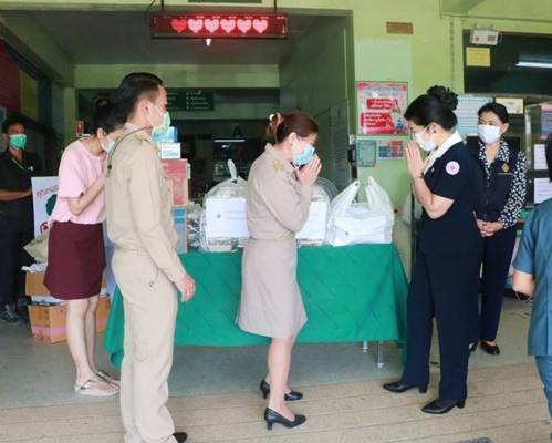 วันที่ 3 พฤษภาคม 2564 .นางอุรสา จินโต นายกเหล่ากาชาดจังหวัดสุราษฎร์ธานีพร้อมด้วย รองนายกเหล่ากาชาดจังหวัดสุราษฎร์ธานีกรรมการฯ และที่ปรึกษาเหล่ากาชาดจังหวัดสุราษฎร์ธานี ได้มอบข้าวกล่อง จำนวน 50 กล่อง พร้อมด้วย ผลไม้สด 50 แพ็ค / น้ำผลไม้ทิปโก้ 2 ลังและหน้ากากอนามัย 5 กล่อง ให้กับ โรงพยาบาลสนามท่าโรงช้างเพื่อเป็นขวัญและกำลังใจให้กับผู้ป่วยโควิด-19 ณ โรงพยาบาลท่าโรงช้าง อำเภอพุนพิน จังหวัดสุราษฎร์ธานี โดยมี แพทย์หญิง สุภาวดี สวัสดิ์แก้ว นายแพทย์ชำนาญการ นางสุชาดา จันทะศรี หัวหน้ากลุ่มงานบริหารทั่วไปและคณะเจ้าหน้าที่โรงพยาบาลท่าโรงช้าง ร่วมในการรับมอบฯ