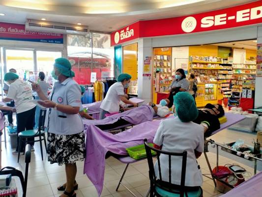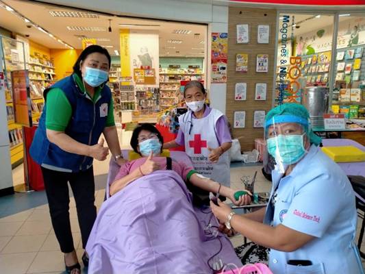 วันที่ 28 เมษายน 2564 นางละมัย เจริญโสภา นายกเหล่ากาชาดจังหวัดตรัง มอบหมายคณะกรรมการเหล่ากาชาด สมาชิก เจ้าหน้าที่ และจิตอาสาสภากาชาดไทย ร่วมกับธนาคารเลือดโรงพยาบาลตรัง ออกหน่วยรับบริจาคโลหิต ณ ห้างสรรพสินค้าสิริบรรณช้อปปิ้งเซ็นเตอร์ จ.ตรัง มีผู้บริจาคทั้งหมด 35 ราย ได้โลหิต 30 ยูนิต คิดเป็นปริมาณ 12,000 ซีซี. พร้อมมอบข้าวสาร 35 ถุง