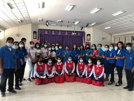 วันที่ 27 มกราคม 2564 (วันคล้ายวันสถาปนายุวกาชาดไทย) ที่โรงเรียนตรังคริสเตียนศึกษา อ.เมือง จ.ตรัง นางละมัย เจริญโสภา นายกเหล่ากาชาดจังหวัดตรัง มอบหมายให้นางปิยพรรณ กาฬวงศ์ วิทยากรยุวกาชาด เป็นประธานในพิธีทบทวนคำปฏิญาณ อ่านคำแถลงสภากาชาดไทย และร่วมร้องเพลงยุวกาชาด พร้อมบรรยายและให้ความรู้สาระเกี่ยวกับประวัติยุวกาชาดและร่วมกิจกรรมบำเพ็ญประโยชน์ จากนั้นได้นำอาสายุวกาชาดไปร่วมรับบริจาคโลหิต ดวงตาและอวัยวะ ที่วิทยาลัยบรมราชชนนีตรัง โดยมี ผอ.ศรีนวล นุ้ยหงษ์ ผอ.รร.ตรังคริสเตียนศึกษา และผอ.ปาณิสรา อภิชัยสรพันธ์ุ ผอ.กศน.เมืองตรัง นำอาสายุวกาชาดมาร่วมกิจกรรม