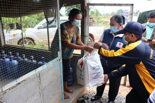 วันที่ 29 เมษายน 2564 นางยุพาภร วิฑูรย์ นายกเหล่ากาชาดจังหวัดอุบลราชธานี พร้อมด้วย สมาชิกเหล่ากาชาดจังหวัดอุบลราชธานี ลงพื้นที่เยี่ยมเเละให้กำลังใจ ผู้ที่มีความเสี่ยงจากติดเชื้อ โควิด -19 พร้อมมอบชุดธารน้ำใจสู้ภัย COVID 19 อำเภอเขมราฐ จังหวัดอุบลราชธานี