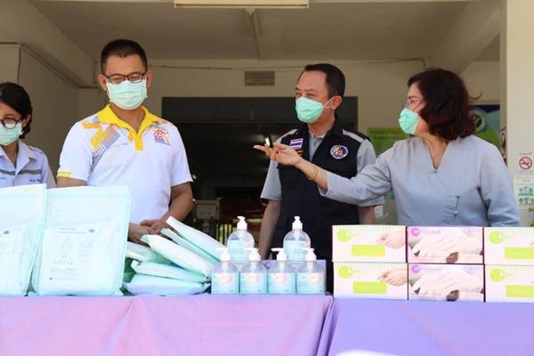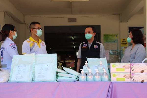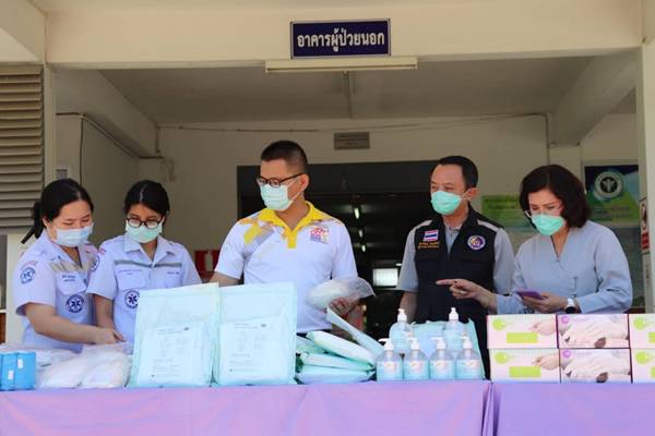วันที่ 4 พฤษภาคม 2564 ณ โรงพยาบาลวังเจ้า อำเภอวังเจ้า จังหวัดตาก นายพงศ์รัตน์ ภิรมย์รัตน์ ผู้ว่าราชการจังหวัดตากในฐานะประธานที่ปรึกษาคณะกรรมการเหล่ากาชาดจังหวัดตาก พร้อมด้วย นางศลิษา ภิรมย์รัตน์ นายกเหล่ากาชาดจังหวัดตาก นายสวนิต สุริยกุล ณ อยุธยา ปลัดจังหวัดตาก/เลขานุการเหล่ากาชาดจังหวัดตาก และสมาชิกเหล่ากาชาดจังหวัดตาก ร่วมมอบอุปกรณ์การแพทย์ ให้แก่โรงพยาบาลวังเจ้า โดยมี นายแพทย์พิจารณ์ สารเสวก ผู้อำนวยการโรงพยาบาลวังเจ้า รับมอบ ในการนี้ เหล่ากาชาดจังหวัดตาก ได้มอบอุปกรณ์ทางการแพทย์และสิ่งของจำเป็นในการป้องกันโควิด-19 ประกอบด้วย หน้ากากอนามัย N95 จำนวน 100 ชิ้น , Face Chield จำนวน 30 ชิ้น , ถุงคลุมรองเท้าแบบใช้แล้วทิ้ง (Disposable Shoe Cover) จำนวน 20 คู่ , ถุงมือตรวจโรค (Examination gloves) จำนวน 2,000 ชิ้น ,เสื้อกาวน์ใช้แล้วทิ้ง (Disp.Isolation coverall sterile) จำนวน 20 ชุด แอลกอฮอล์เจล (beWILD HAND GEL 500 ML) จำนวน 10 ขวด , แอลกอฮอล์เจล ขนาด 450 ml. จำนวน 5 ขวด ,แอลกอฮอล์เจล ขนาด 5,000 ml. จำนวน 1 แกลลอน และหน้ากากอนามัย (Surgical mask) จำนวน 1,000 ชิ้น เพื่อสนับสนุนการปฏิบัติงานของบุคลากรทางการแพทย์ และเจ้าหน้าที่ปฏิบัติงานดูแลผู้ป่วยฯ เพื่อใช้ป้องกันและควบคุมการแพร่ระบาดของโรคโควิด-19 พร้อมกันนี้ได้จัดซื้อแตงโม ผลผลิตของเกษตรกร นำมามอบเป็นเสบียงให้กับคณะเจ้าหน้าที่ทีมแพทย์ของโรงพยาบาลวังเจ้าอีกด้วย