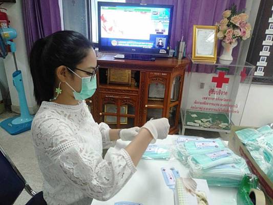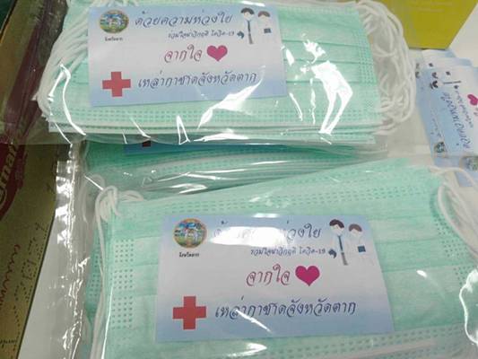 วันที่ 30 เมษายน 2564 ณ สำนักงานเหล่ากาชาดจังหวัดตาก นางศลิษา ภิรมย์รัตน์ นายกเหล่ากาชาดจังหวัดตาก จัดเตรียมหน้ากากอนามัย Surgical Mask จำนวน 226 ชุด ๆ ละ 10 ชิ้น สำหรับบรรจุในถุงธารน้ำใจกู้ชีวิตฝ่าวิกฤตโควิด-19 เพื่อส่งมอบให้แก่ผู้ได้รับผลกระทบในพื้นที่จังหวัดตาก จำนวน 226 ราย ประกอบด้วย