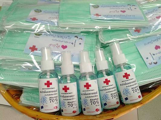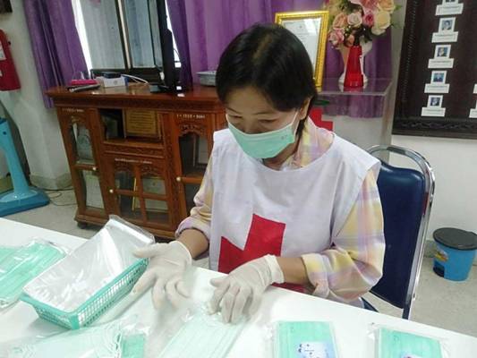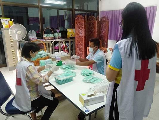 วันที่ 28 เมษายน 2564 ณ สำนักงานเหล่ากาชาดจังหวัดตาก นางศลิษา ภิรมย์รัตน์ นายกเหล่ากาชาดจังหวัดตาก จัดเตรียมบรรจุหน้ากากอนามัย Surgical Mask และสเปรย์แอลกอฮอล์ขนาด 50 ml สำหรับมอบให้แก่โรงพยาบาลแม่สอด เพื่อสนับสนุนการปฏิบัติงานของบุคลากรทางการแพทย์ และเจ้าหน้าที่ปฏิบัติงานดูแลผู้ป่วยที่ติดเชื้อโควิด-19 เพื่อใช้ป้องกันและควบคุมการแพร่ระบาดของโรคโควิด-19 ต่อไป