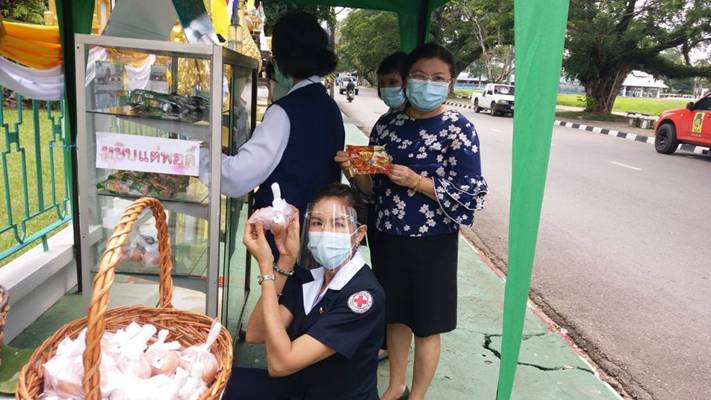 วันที่ 6 พฤษภาคม 2564 นางสรินยา ประกอบผล นายกเหล่ากาชาดจังหวัดตราด พร้อมด้วยนางศุภากร โกศลเศรษฐ์ นางจิราภรณ์ พุ่มชลิต และนางเฉลิมศรี กือเจริญ กรรมการเหล่ากาชาดจังหวัดตราด นำไข่ไก่ จำนวน 90 ฟอง บรรจุในตู้ “จวนปันสุข” ณ บริเวณหน้าจวนผู้ว่าราชการจังหวัดตราด โดยนายภิญโญ ประกอบผล ผู้ว่าราชการจังหวัดตราด/ประธานที่ปรึกษาคณะกรรมการเหลกาชาดจังหวัดตราด ได้มีดำริให้จัดตั้งตู้ “จวนปันสุข” ขึ้น เพื่อให้ข้าราชการ และประชาชน นำเครื่องอุปโภคบริโภค มาแบ่งปันให้ผู้ที่ขาดแคลน “หยิบแต่พอดี” ในช่วงของสถานการณ์การแพร่ระบาดของโรคติดเชื้อไวรัสโคโรนา 2019 เหล่ากาชาดจังหวัดตราด ขอเชิญชวนผู้ที่มีความประสงค์จะแบ่งปันสามารถนำสิ่งของ อาหาร เครื่องดื่ม มาบรรจุใส่ในตู้ได้ ทุกวันเพื่อร่วมกัน “บำบัดทุกข์ บำรุงสุข”