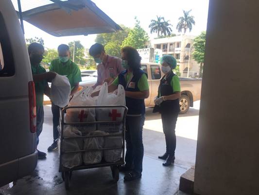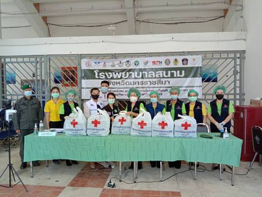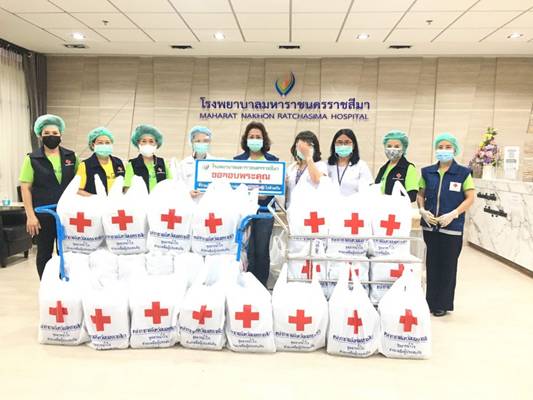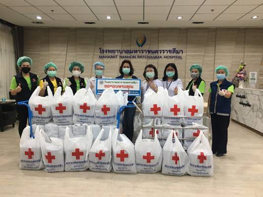 วันที่ 5 พฤษภาคม 2564 นางณัฏฐินีภรณ์ จันทรโณทัย นายกเหล่ากาชาดจังหวัดนครราชสีมา พร้อมด้วยรองนายกเหล่ากาชาด คณะกรรมการและสมาชิกเหล่ากาชาดจังหวัดนครราชสีมา ร่วมมอบและรับการสนับสนุนจาก – คุณวรรณรวี วิริยะกุลนันท์ และคณะ 200 กล่อง-โรงเหล้ามิตรภาพ 50 กล่อง- มหาวิทยาลัยราชภัฏนครราชสีมา ข้าวกล่อง 500 กล่อง โรงสียงสงวน โคราช 150 กล่องมอบให้แก่โรงพยาบาลมหาราช 500 กล่อง (กลางวัน-เย็น) โรงพยาบาลสนามแห่งที่ 1 จำนวน 160 กล่อง (กลางวัน-เย็น)โรงพยาบาล เทพรัตน์ฯ 30 กล่อง (กลางวัน) กก.โรคติดต่อและสื่อมวลชน 30 กล่อง (กลางวัน)วัดสุทธจินดา จำนวน 45 กล่อง เพื่อนำไปมอบให้แก่บุคลากรทางการแพทย์และเจ้าหน้าที่ ที่เกี่ยวข้อง ณ โรงพยาบาลสนาม สนามกีฬาเฉลิมพระเกียรติ 80 พรรษา จังหวัดนครราชสีมา และโรงพยาบาลมหาราชนครราชสีมา
