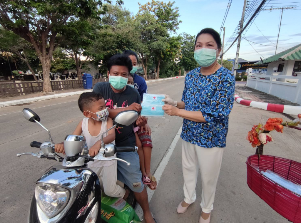 วันที่ 1 พฤษภาคม 2564 นางเตือนจิตร์ รักร้อย นายกเหล่ากาชาดจังหวัดอุทัยธานี ประธานชมรมแม่บ้านมหาดไทยจังหวัดอุทัยธานี นำหน้ากากอนามัยของเหล่ากาชาดจังหวัดอุทัยธานี และที่ได้รับบริจาคจากสำนักงานสวัสดิการและคุ้มครองแรงงานจังหวัดอุทัยธานี มอบให้แก่ประชาชน ณ บริเวณหน้าจวนผู้ว่าราชการจังหวัดอุทัยธานี เพื่อรณรงค์และประชาสัมพันธ์ให้ประชาชนสวมหน้ากากอนามัยหรือหน้ากากผ้า เพื่อป้องกันการแพร่ระบาดของเชื้อไวรัสโคโรนา 2019 (covid-19) เมื่ออยู่นอกเคหสถานหรืออยู่ในที่สาธารณะ