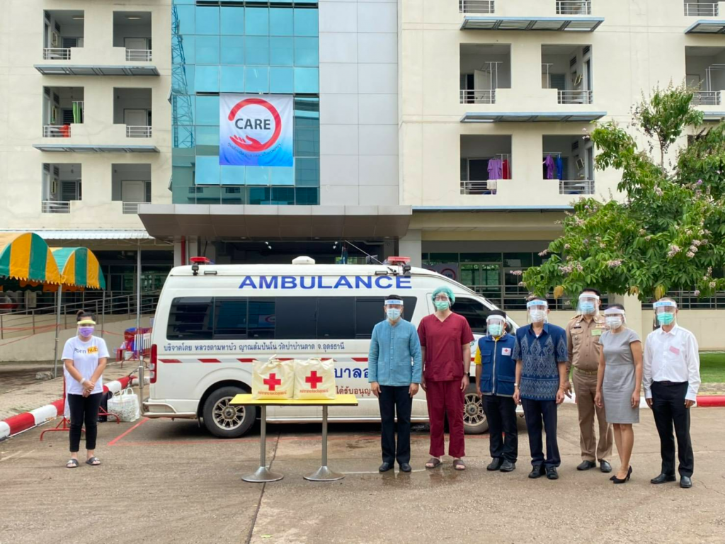 วันที่ 27 เมษายน 2564 นำโดย นายสยาม ศิริมงคล นายกเหล่ากาชาดจังหวัดอุดรธานี/ผู้ว่าราชการจังหวัดอุดรธานี พร้อมด้วย นายกองเอกปราโมทย์ ธัญญพืช รองนายกเหล่ากาชาดจังหวัดอุดรธานี/รองผู้ว่าราชการจังหวัดอุดรธานี เจ้าหน้าที่เหล่ากาชาดจังหวัดอุดรธานี และหน่วยงานที่เกี่ยวข้องร่วมให้กำลังใจ ในการส่งผู้ป่วยรายแรกที่ได้เข้ารับการรักษาตัวและไม่มีอาการผิดปกติ เพื่อให้กลับไปกักตัวในที่พักอาศัยตามภูมิลำเนาของตนเอง 14 วัน ในการนี้ เหล่ากาชาดจังหวัดอุดรธานี มอบชุดเครื่องอุปโภคบริโภค จำนวน 2 ชุด ณ ศูนย์โอบอุ้มดูแลและห่วงใย ชาวอุดรธานี มหาวิทยาลัยราชภัฏอุดรธานี (ศูนย์สามพร้าว) อำเภอเมืองอุดรธานี จังหวัดอุดรธานี