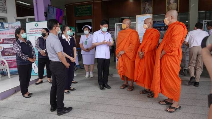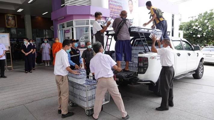 วันที่ 27 เมษายน 2564 ณ โรงพยาบาลอุทัยธานี พระครูปลัดสมนึก สุธัมมถิรสัทโธ เจ้าอาวาสวัดจันทราราม (วัดท่าซุง) พร้อมด้วย นางเตือนจิตร์ รักร้อย นายกเหล่ากาชาดจังหวัดอุทัยธานี /ประธานชมรมแม่บ้านมหาดไทยจังหวัดอุทัยธานี ร่วมมอบน้ำดื่มวัดจันทราราม (วัดท่าซุง) ให้แก่โรงพยาบาลจังหวัดอุทัยธานี เพื่อมอบให้แก่ผู้ป่วย โควิด -19 ที่รักษาตัวที่โรงพยาบาลอุทัยธานี โรงพยาบาลหนองฉาง และโรงพยาบาลบ้านไร่
