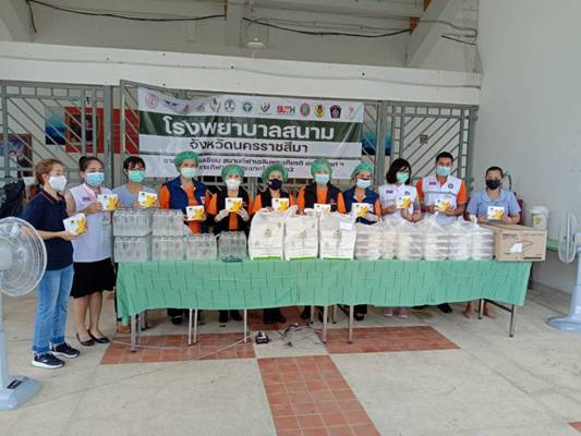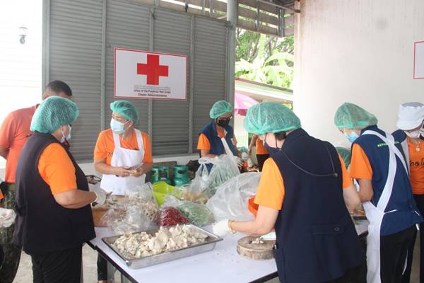 วันที่ 29 เมษายน 2564 นางณัฏฐินีภรณ์ จันทรโณทัย นายกเหล่ากาชาดจังหวัดนครราชสีมา พร้อมคณะกรรมการและสมาชิกเหล่ากาชาดจังหวัดนครราชสีมา ร่วมปรุงอาหารมอบให้แก่โรงบาลสนามแห่งที่ 1 จำนวน 160 กล่อง (กลางวัน-เย็น มื้อละ 80 กล่อง)โรงบาลสนามแห่งที่ 2 จำนวน 100 กล่อง (กลางวัน-เย็น มื้อละ 50 กล่อง) ทีมแพทย์ ตรวจโควิค-19 จำนวน 80 กล่อง (กลางวัน)วัดสุทธจินดา จำนวน 45 กล่องโดยได้รับการสนับสนุนผลิตภัณฑ์ในการประกอบอาหาร ได้แก่ เนื้อไก่สด ไก่ปรุงสุก เนื้อหมูสด และไข่ไก่สด จาก บริษัท ซีพีเอฟประเทศไทย จำกัด(มหาชน)และรับการสนับสนุนข้าวกล่อง จากกลุ่ม 12 สาว ณ โคราชสนับสนุนมื้อเที่ยง 80 กล่อง และ มื้อเย็น 80 กล่อง ขนมหวาน 80 กล่องณ จวนผู้ว่าราชการจังหวัดนครราชสีมา เพื่อนำไปมอบให้แก่บุคลากรทางการแพทย์และเจ้าหน้าที่ที่เกี่ยวข้อง ณ โรงพยาบาลสนาม อาคารชาติชายฮอลล์ สนามกีฬาเฉลิมพระเกียรติ 80 พรรษา จังหวัดนครราชสีมา