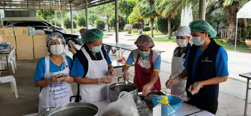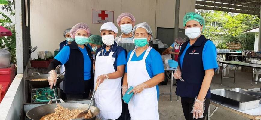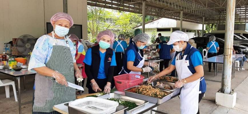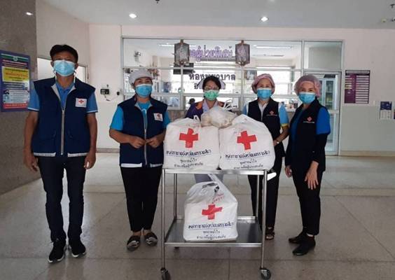 วันที่ 7 พฤษภาคม 2564 นางณัฏฐินีภรณ์ จันทรโณทัย นายกเหล่ากาชาดจังหวัดนครราชสีมา พร้อมด้วยรองนายกเหล่ากาชาด คณะกรรมการและสมาชิกเหล่ากาชาดจังหวัดนครราชสีมา ร่วมปรุงอาหารและรับการสนับสนุนจาก – ครัวเหล่ากาชาดจังหวัดนครราชสีมา 200 กล่อง- มหาวิทยาลัยราชภัฏนครราชสีมา ข้าวกล่อง 500 กล่อง-.คุณน้ำหวาน ประสานผ่านคุณชัญญานุช สุรฉัตร ก๋วยเตี๋ยวเส้นจันทน์ 100 ชุด- คุณถนอมศรี แสงพินิจ และสมาชิกกลุ่มแชร์ชิลชิล ข้าว+ ของหวาน 1ุ60 กล่อง นำไปมอบให้แก่โรงพยาบาลมหาราช 500 กล่อง (กลางวัน-เย็น)โรงพยาบาลค่ายสุรนารี 100 กล่อง (กลางวัน-เย็น)โรงพยาบาลสนามแห่งที่ 1 จำนวน 160 กล่อง (กลางวัน-เย็น)โรงพยาบาลเทพรัตน์ฯ 60 กล่อง (กลางวัน เย็น)กก.โรคติดต่อและสื่อมวลชน 25 กล่อง (กลางวัน)วัดสุทธจินดา จำนวน 45 กล่อง เจ้าหน้าที่ อส. 10 กล่องและได้รับการสนับสนุนผลิตภัณฑ์ในการประกอบอาหาร ได้แก่ เนื้อไก่สด ไก่ปรุงสุก เนื้อหมูสด และไส้กรอก จาก บริษัท ซีพีเอฟประเทศไทย จำกัด(มหาชน) ในการปะกอบอาหารของครัวกาชาด เพื่อนำไปมอบให้แก่บุคลากรทางการแพทย์และเจ้าหน้าที่ ที่เกี่ยวข้อง ณ โรงพยาบาลสนาม สนามกีฬาเฉลิมพระเกียรติ 80 พรรษา จังหวัดนครราชสีมา และโรงพยาบาลมหาราชนครราชสีมา
