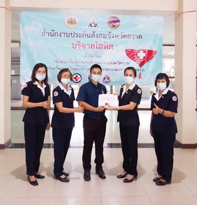 วันที่ 4 กุมภาพันธ์ 2564 นางสรินยา ประกอบผล นายกเหล่ากาชาดจังหวัดตราด มอบหมายให้ นางบุณณฎา เทพวรชัย รองนายกเหล่ากาชาดจังหวัดตราด พร้อมด้วยคณะกรรมการและสมาชิกเหล่ากาชาดจังหวัดตราด ร่วมออกหน่วยรับบริจาคโลหิต ณ ศาลาประชาคมจังหวัดตราด ซึ่งจัดขึ้นโดยสำนักงานประกันสังคมจังหวัดตราด ร่วมกับธนาคารเลือด โรงพยาบาลตราด โดยมีนายกัฬชัย เทพวรชัย รองผู้ว่าราชการจังหวัดตราด เดินทางมาเยี่ยมและให้กำลังใจ พร้อมทั้งร่วมบริจาคโลหิตในครั้งนี้ด้วย ซึ่งในครั้งนี้มีผู้แสดงความจำนงบริจาคโลหิต จำนวน 147 ราย ผ่านการคัดกรอง จำนวน 116 ราย ได้โลหิต 52,200 ซีซี และมีผู้แสดงความจำนงบริจาคดวงตา จำนวน 2 ราย อวัยวะ 2 ราย และอุทิศร่างกายฯ จำนวน 3 ราย