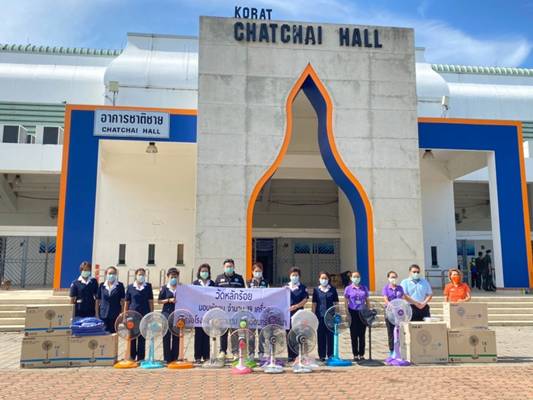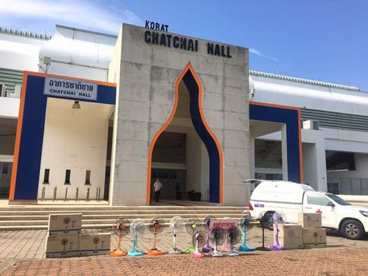 วันที่ 15 เมษายน 2564 นางณัฏฐินีภรณ์ จันทรโณทัย นายกเหล่ากาชาดจังหวัดนครราชสีมา พร้อมด้วย รองนายกเหล่ากาชาดจังหวัดนครราชสีมา คณะกรรมการ และสมาชิกเหล่ากาชาดจังหวัดนครราชสีมา สถานีกาชาดที่ 4 จังหวัดนครราชสีมา รับมอบพัดลมจำนวน 19 ตัว จากวัดหลักร้อย อ.เมือง จ.นครราชสีมา แล้วนำมามอบแก่โรงพยาบาลสนาม ณ อาคารชาติชาย ฮอลล์ สนาม 80 พรรษา ต.สุรนารี อ.เมืองนครราชสีมา จ.นครราชสีมา