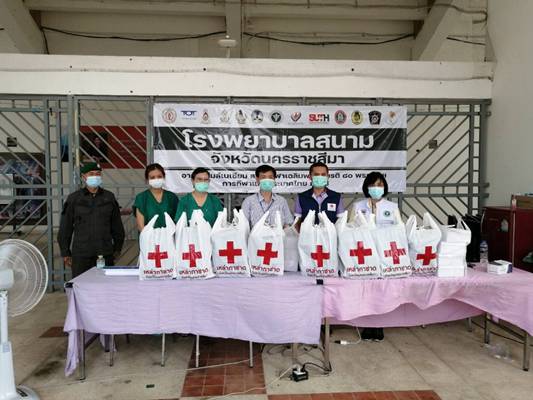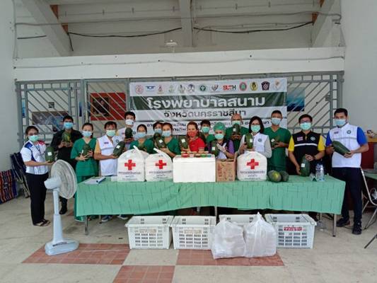 วันที่ 8 พฤษภาคม 2564 นายวิเชียร จันทรโณทัย ผู้ว่าราชการจังหวัดนครราชสีมา พร้อมด้วยนางณัฏฐินีภรณ์ จันทรโณทัย นายกเหล่ากาชาดจังหวัดนครราชสีมา คณะกรรมการและสมาชิกเหล่ากาชาดจังหวัดนครราชสีมา ร่วมปรุงอาหารและรับการสนับสนุนจาก – ครัวเหล่ากาชาดจังหวัดนครราชสีมา ข้าว 320 กล่อง- มหาวิทยาลัยราชภัฏนครราชสีมา ข้าว 230 กล่อง-โรงเหล้ามิตรภาพ ข้าว 90 กล่อง-คุณนงนุช สิงห์สุขสวัสดิ์ ขนมหวาน 200 ถ้วยนำไปมอบให้แก่โรงพยาบาลมหาราช ข้าว 430 กล่อง+แตงโม (กลางวัน-เย็น)โรงพยาบาลค่ายสุรนารี ขนม+แตงโม (กลางวัน)โรงพยาบาลสนามแห่งที่ 1 จำนวน 160 กล่อง+แตงโม (กลางวัน-เย็น)วัดสุทธจินดา ข้าว 50 กล่อง +แตงโมและได้รับการสนับสนุนผลิตภัณฑ์ในการประกอบอาหาร ได้แก่ เนื้อไก่สด ไก่ปรุงสุก เนื้อหมูสด และไส้กรอก จาก บริษัท ซีพีเอฟประเทศไทย จำกัด(มหาชน) ในการปะกอบอาหารของครัวกาชาด เพื่อนำไปมอบให้แก่บุคลากรทางการแพทย์และเจ้าหน้าที่ ที่เกี่ยวข้อง ณ โรงพยาบาลสนาม สนามกีฬาเฉลิมพระเกียรติ 80 พรรษา จังหวัดนครราชสีมา และโรงพยาบาลมหาราชนครราชสีมา