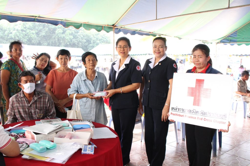 รองนายกเหล่ากาชาดจังหวัดปราจีนบุรี กรรมการและสมาชิกเหล่ากาชาดจังหวัดปราจีนบุรี ร่วมมอบแว่นสายตาให้ผู้สูงอายุยากไร้ จำนวน 81 ราย ตามโครงการเหล่ากาชาดจังหวัด
