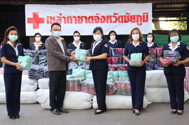 วันที่ 19 มกราคม 2564 นางสายชล บุญอรณะ นายกเหล่ากาชาดจังหวัดชัยภูมิ พร้อมด้วยนางสมปรารถนา ชัยวิรัตนะ รองนายกเหล่ากาชาดจังหวัดชัยภูมินางณัฐกมล วัชกีกุล กรรมการเหล่ากาชาดจังหวัดชัยภูมิ และคณะ ร่วมส่งมอบเสื้อกันหนาวและหมวกไหมพรม จากสถานีกาชาดที่ 4 นครราชสีมา ให้กับอำเภอ 8 แห่ง ได้แก่ อำเภอภูเขียว อำเภอคอนสาร อำเภอเกษตรสมบูรณ์ อำเภอจัตุรัส อำเภอบำเหน็จณรงค์ อำเภอบ้านแท่น อำเภอแก้งคร้อ และอำเภอเมืองชัยภูมิ เพื่อนำไปบรรเทาทุกข์ให้ราษฎรผู้ประสบภัยหนาว จำนวน 800 ชุด ณ สำนักงานเหล่ากาชาดจังหวัดชัยภูมิ โดยมีนายกเหล่ากาชาดจังหวัดชัยภูมิเป็นประธาน