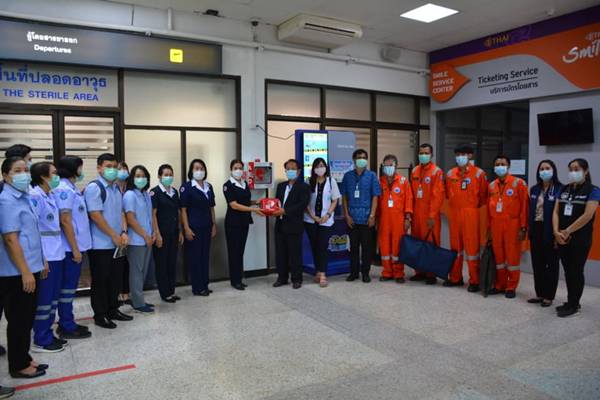 โดยมีนายอำเภอ ปลัดอำเภอ สาธารณสุขอำเภอ โรงพยาบาล แต่ละอำเภอ เป็นผู้รับมอบ พร้อมสาธิตและแนะนำการกู้ชีวิต การใช้เครื่องกระตุกหัวใจไฟฟ้าอัตโนมัติ (AED) กับเจ้าหน้าที่และประชาชน