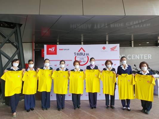 ที่มีตราสัญลักษณ์สภากาชาดไทย และร้านณัฐมอเตอร์ ได้มอบเสื้อยืดให้กับผู้ร่วมบริจาคโลหิตทุกราย ณ ห้างหุ้นส่วนจำกัด ณัฐมอเตอร์เซลล์ อำเภอเมืองอุดรธานี จังหวัดอุดรธานี