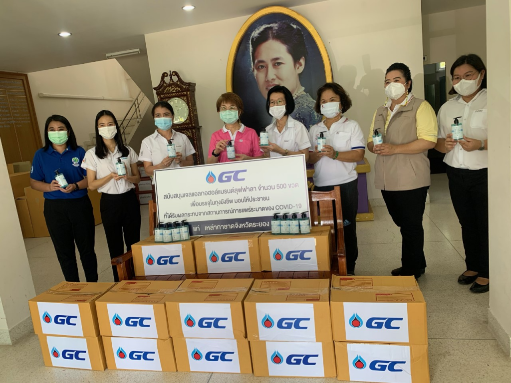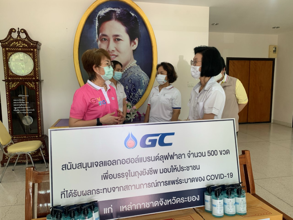 วันที่ 20 พฤษภาคม 2564 นางธัมมิกา เอี่ยมแสง นายกเหล่ากาชาดจังหวัดระยอง พร้อมด้วย รองนายกเหล่ากาชาดจังหวัดระยอง ร่วมรับมอบเจลแอลกอฮอล์ลุฟฟาลาล้างมือ จำนวน 500 ขวด จากบริษัท พีทีที โกลบอล เคมิคอล จำกัด (มหาชน) เพื่อมอบให้ครอบครัวผู้ยากไร้ที่ได้รับผลกระทบจากการแพร่ระบาดของโรค Covid-19 ณ สำนักงานเหล่ากาชาดจังหวัดระยอง ตำบลท่าประดู่ อำเภอเมืองระยอง จังหวัดระยอง