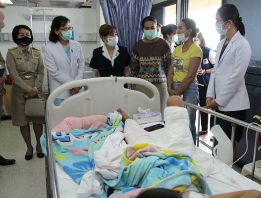 วันที่ 23 พฤศจิกายน 2563 นางจันทรรัตน์ ไตรติลานันท์ นายกเหล่ากาชาดจังหวัดฉะเชิงเทรา พร้อมด้วยสำนักงานพัฒนาสังคมและความมั่นคงของมนุษย์จังหวัดฉะเชิงเทรา ลงเยี่ยมให้กำลังใจและส่งต่อความห่วงใย เด็กชายวัย 8 ขวบ ที่ได้รับบาดเจ็บจากเกิดเหตุการณ์ถูกไฟลวกตามร่างกายได้รับบาดเจ็บสาหัส ณ โรงพยาบาลพุทธโสธร ตำบลหน้าเมือง อำเภอเมือง จังหวัดฉะเชิงเทรา