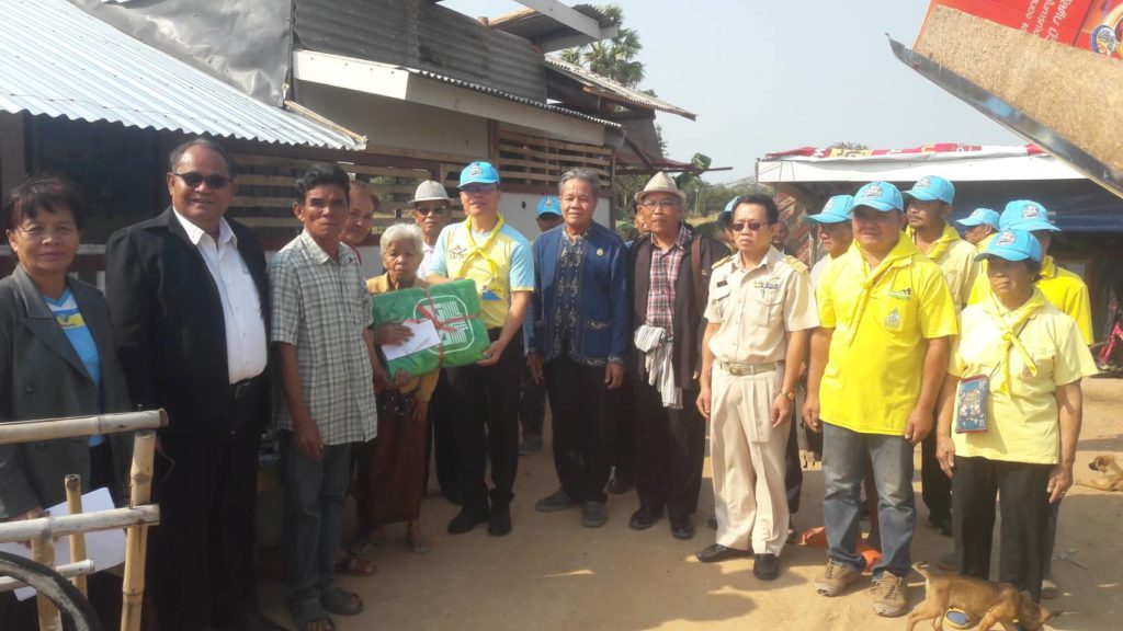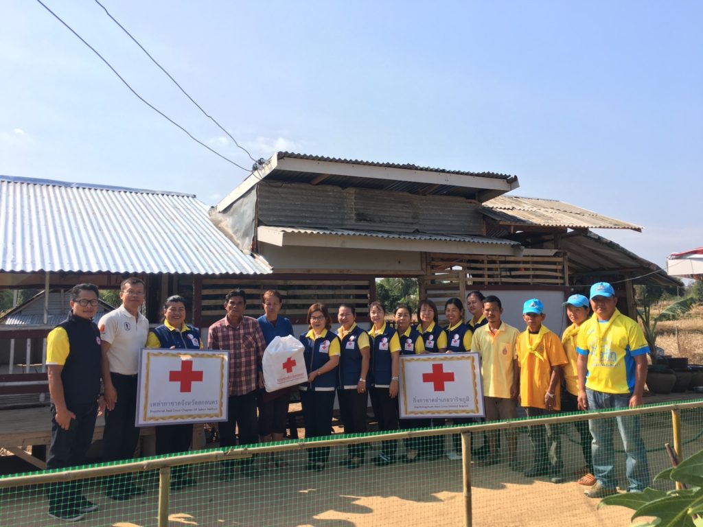 และสมาชิกกิ่งกาชาดอำเภอวาริชภูมิ ร่วมกับ นายปรีชา มณีสร้อย นายอำเภอกุดบาก กำนัน ผู้ใหญ่บ้าน ฯลฯ และจิตอาสาพระราชทาน ออกเยี่ยมให้กำลังใจและมอบถุงยังชีพให้กับ