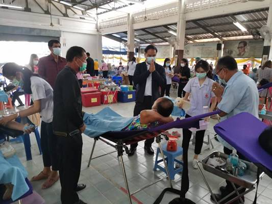 วันที่ 11 พฤษภาคม 2564 นางมัลลิกา พุฒิชาติ นายกเหล่ากาชาดจังหวัดศรีสะเกษ มอบหมายให้นายพงศธร จัตุพล ผู้ช่วยเหรัญญิกเหล่ากาชาดจังหวัดศรีสะเกษ พร้อมด้วยเจ้าหน้าที่เหล่ากาชาดจังหวัดศรีสะเกษ ออกหน่วยรับบริจาคโลหิต ร่วมกับ คลังเลือดโรงพยาบาลศรีสะเกษ ณ อำเภอน้ำเกลี้ยง จังหวัดศรีสะเกษ ซึ่งมีผู้แสดงความประสงค์บริจาคโลหิต จำนวน 175 ราย มีผู้บริจาคโลหิตได้จริง จำนวน 153 ราย ปริมาณโลหิตที่ได้ จำนวน 153 ยูนิต และมีผู้ได้รับเข็มบริจาคโลหิต ครบ 7 ครั้ง จำนวน 4 ราย ครบ 16 ครั้ง จำนวน 3 ราย ครบ 24 ครั้ง จำนวน 3 ราย และครบ 36 ครั้ง จำนวน 1 ราย โดยมีนายวัฒนา พุฒิชาติ ผู้ว่าราชการจังหวัดศรีสะเกษ ให้เกียรติเยี่ยมสร้างขวัญกำลังใจผู้มาบริจาคโลหิต เจ้าหน้าที่ผู้ปฏิบัติงาน และนางสาวอรุณรักษ์ เรืองรัตนโภคิน ปลัดอำเภอ รักษาราชการแทนนายอำเภอน้ำเกลี้ยง ให้การต้อนรับ พร้อมนำข้าราชการ ลูกจ้าง กำนัน ผู้ใหญ่บ้าน องค์กรปกครองส่วนท้องถิ่นตลอดจนประชาชนในพื้นที่ร่วมกิจกรรมบริจาคโลหิตในครั้งนี้ ทั้งนี้ ได้ถือปฏิบัติตามมาตรการป้องกันการแพร่ระบาดของโรคติดเชื้อไวรัสโคโรนา 2019 (COVID-19) อย่างเคร่งครัด