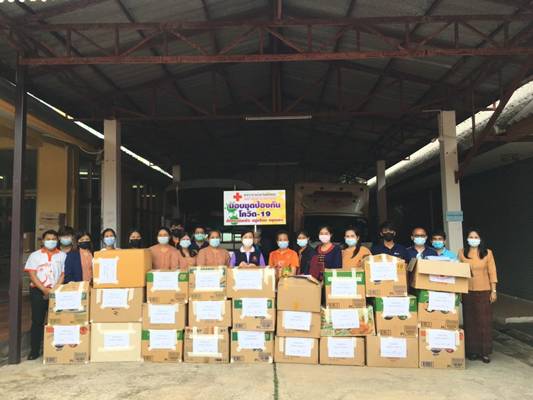 วันที่ 25 พฤษภาคม 2564 นางมัลลิกา พุฒิชาติ นายกเหล่ากาชาดจังหวัดศรีสะเกษ พร้อมด้วยเลขานุการเหล่ากาชาดจังหวัดศรีสะเกษ ผู้ช่วยเลขานุการเหล่ากาชาดจังหวัดศรีสะเกษ นำชุดกิ๊ฟเซ็ตป้องกันโควิด 2019 ประกอบด้วย หน้ากากอนามัย สเปรย์แอลกอฮอล์ และเจลแอลกอฮอล์ จำนวน 1,000 ชุด มอบให้กับนายอำเภอศรีรัตนะ เพื่อนำไปมอบให้ประชาชนที่ได้รับความเดือดร้อนและผลกระทบจากสถานการณ์การแพร่ระบาดของโรคติดเชื้อไวรัสโคโรนา 2019 (COVID–19) ในพื้นที่ตำบลตูม จำนวน 7 หมู่บ้าน อำเภอศรีรัตนะ จังหวัดศรีสะเกษ