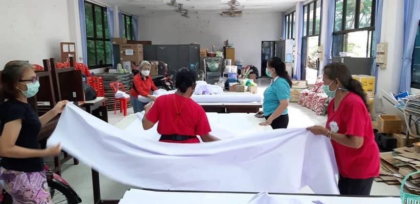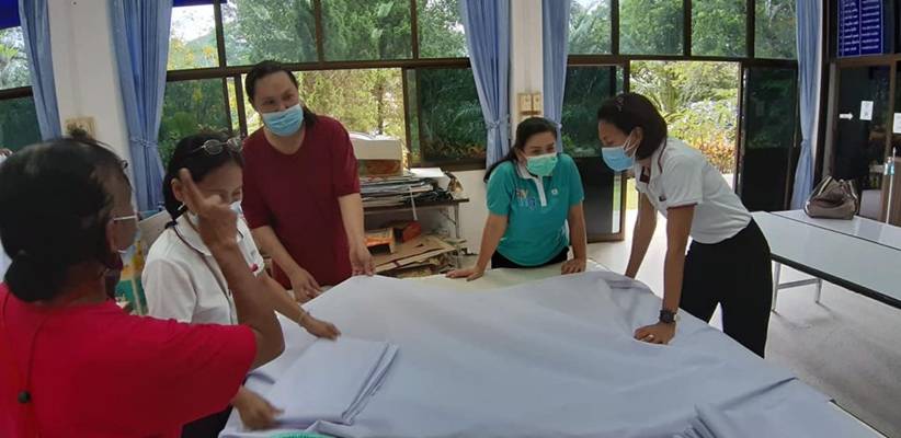 วันที่ 2 พฤษภาคม 2564 นายสมเกียรติ ศรีษะเนตร นายกเหล่ากาชาดจังหวัดระนอง มอบหมายให้นางปวีณ์ริศา เกิดสม รองนายกเหล่ากาชาดจังหวัดระนองพร้อมด้วยกรรมการและสมาชิกเหล่ากาชาดจังหวัดระนอง แม่บ้านตำรวจจังหวัดระนอง และอาสาสมัคร ร่วมตัดผ้าเพื่อเย็บเป็นผ้าปูที่นอนและปลอกหมอนจำนวน 316 หลา และส่งมอบให้โรงพยาบาลสนามของจังหวัดระนองต่อไป (ขอขอบคุณผู้มีจิตศรัทธาร่วมสนับสนุนบริจาคผ้าในการตัดเย็บดังกล่าว)