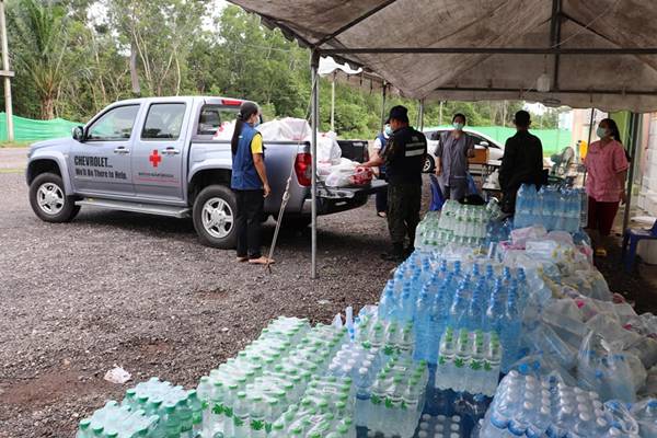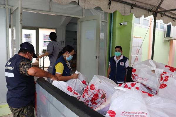 วันที่ 24 พฤษภาคม 2664 ณ โรงยิมเนเซี่ยม สนามกีฬาเทศบาลเมืองบางริ้น ตำบลบางริ้น อำเภอเมืองระนอง เหล่ากาชาดจังหวัดระนอง มอบถุงยังชีพให้แก่ผู้ติดเชื้อโควิด-19 ที่รักษาตัวหายแล้วพร้อมที่จะกลับบ้าน จำนวน 20 ชุด ตามนโยบายของนายสมเกียรติ ศรีษะเนตร ผู้ว่าราชการจังหวัดระนอง/นายกเหล่ากาชาดจังหวัดระนอง โดยมอบถุงยังชีพแก่ผู้ป่วยทุกคนก่อนกลับบ้าน เพื่อเป็นการสร้างขวัญและกำลังใจ พร้อมกำชับให้ปฏิบัติตามมาตรการการป้องกันการติดเชื้อไวรัสโคโรนา 2019 อย่างเคร่งครัด โรงยิมเนเซี่ยม สนามกีฬาเทศบาลเมืองบางริ้น ตำบลบางริ้น อำเภอเมืองระนอง จังหวัดระนอง เป็นโรงพยาบาลสนามแห่งที่ 1 ของจังหวัดระนอง ซึ่งรองรับผู้ติดเชื้อโควิด-19 ได้ จำนวน 100 เตียง