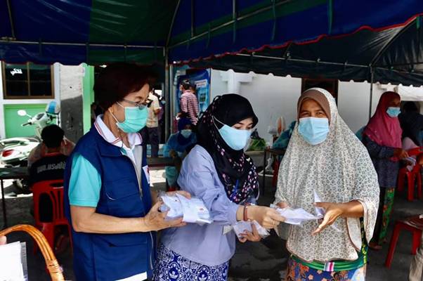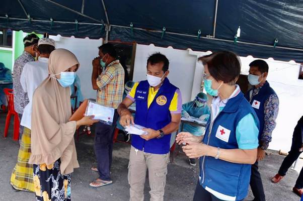 วันที่ 23 เมษายน 2564 นางโสรยา พานิชพงศ์ นายกเหล่ากาชาดจังหวัดยะลา มอบหมายให้คณะกรรมการเหล่ากาชาดจังหวัดยะลา พร้อมด้วยปลัดอาวุโสอำเภอกรงปินัง ผู้นำท้องที่ ผู้นำท้องถิ่น เจ้าหน้าที่สาธารณสุข บัณฑิตอาสา และ อสม.ลงพื้นที่เยี่ยมให้กำลังใจและมอบหน้ากากอนามัยตราสัญลักษณ์สภากาชาดไทยให้แก่ เจ้าหน้าที่ รพ.สต. อสม.และพี่น้องประชาชนที่มาตรวจคัดกรอง เพื่อป้องกันการแพร่ระบาดของโรคโควิด – 19 จำนวน 500 ชิ้น ณ มัสยิดบ้านกีเยาะ หมู่ที่ 4 ตำบลกรงปินัง อำเภอกรงปินัง จังหวัดยะลา