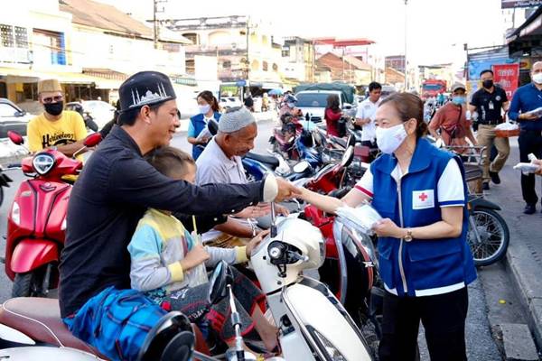 วันที่ 13,14 เมษายน 2564 นางโสรยา พานิชพงศ์ นายกเหล่ากาชาดจังหวัดยะลา พร้อมด้วยกรรมการเหล่ากาชาดจังหวัดยะลา นายธราวุธ ช่วยเกิด นายอำเภอเมืองยะลา หัวหน้าส่วนราชการ สมาชิกแม่บ้านตำรวจภูธรจังหวัดยะลา สื่อมวลชน และทีมเพจ สวท.ยะลา ลงพื้นที่ชุมชนตลาดเก่า และตลาดสดพิมลชัย เขตเทศบาลนครยะลา ตำบลสะเตง อำเภอเมืองยะลา จังหวัดยะลา เพื่อรณรงค์ประชาสัมพันธ์ตามมาตรการการป้องกันโรคโควิด-19 ตามแนวทางของกระทรวงสาธารณสุขอย่างเคร่งครัด พร้อมทั้งได้แจกหน้ากากอนามัยตราสัญญาลักษณ์สภากาชาดไทยและหน้ากากอนามัยแบบผ้าที่ได้รับการบริจาคจากส่วนราชการและผู้มีจิตศรัทธา แก่พ่อค้า แม่ค้าและพี่น้องประชาชนที่มาซื้อส่ิงของและอาหารในตลาด จำนวน 2,000 ชิ้น